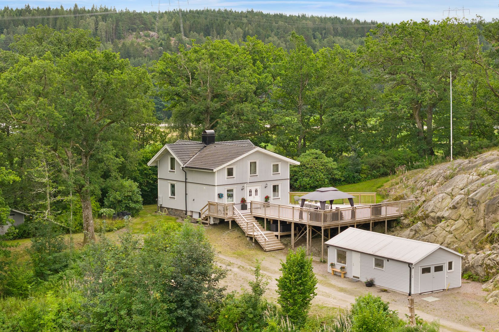 Denna villa erbjuder ett naturskönt och avskilt läge med en imponerande tomt om 5 000 kvm, helt utan närliggande grannar. Perfekt för dig som söker frihetskänsla, utrymme och en ostörd vardag. Samtidigt har du nära till motorvägen vilket gör pendlingen smidig till både Göteborg och Trollhättan.