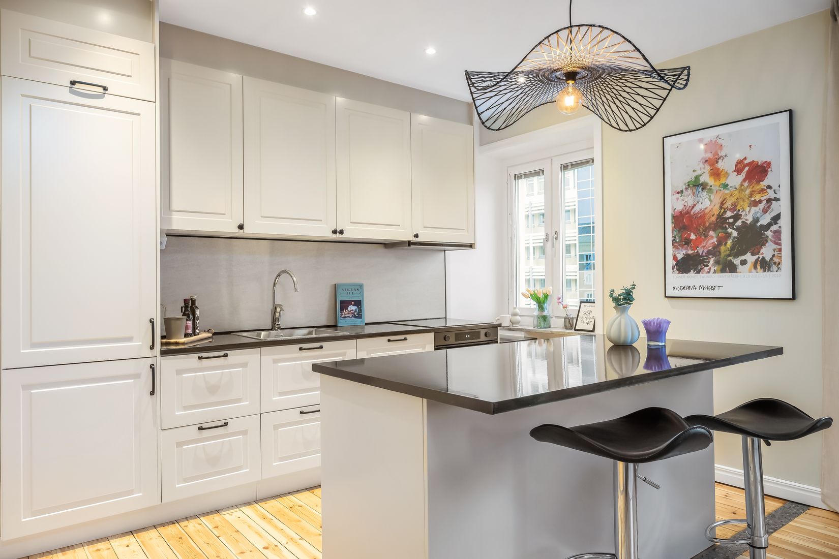 Den smakfulla planlösningen bjuder på ett tidlöst renoverat kök med köksö - i öppen planlösning mot vardagsrummet. Här finns stora ytor för både matlagning, sociala tillställningar och hemmamys. Ett vackert trägolv och ljusa ytskikt ger tillsammans med det härliga ljusinsläppet en fantastisk rymd. Från vardagsrummet nås även den trevliga balkongen med morgonsol och fin utsikt. Här finns även ett ordentligt sovrum, ett nyrenoverat duschrum med smakfulla färg- och materialval och en inbjudande hall med plats för garderober.