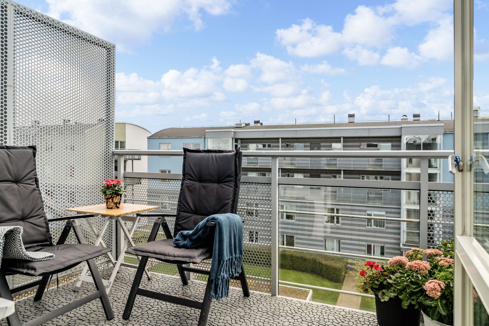 En av bostadens stora fördelar är den generösa balkongen – belägen i soligt läge. Här kan du enkelt möblera med en sittgrupp och njuta av lediga stunder under bar himmel. En perfekt plats för långa sommarkvällar med familj och vänner.