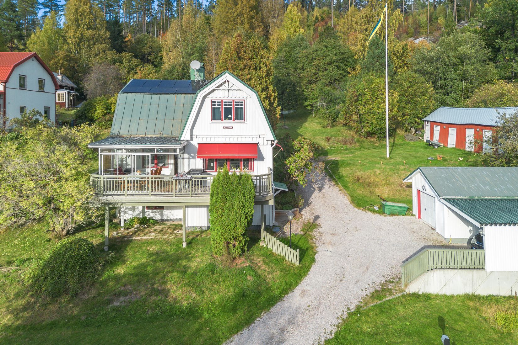 Flera uteplatser samt inglasat uterum och altan