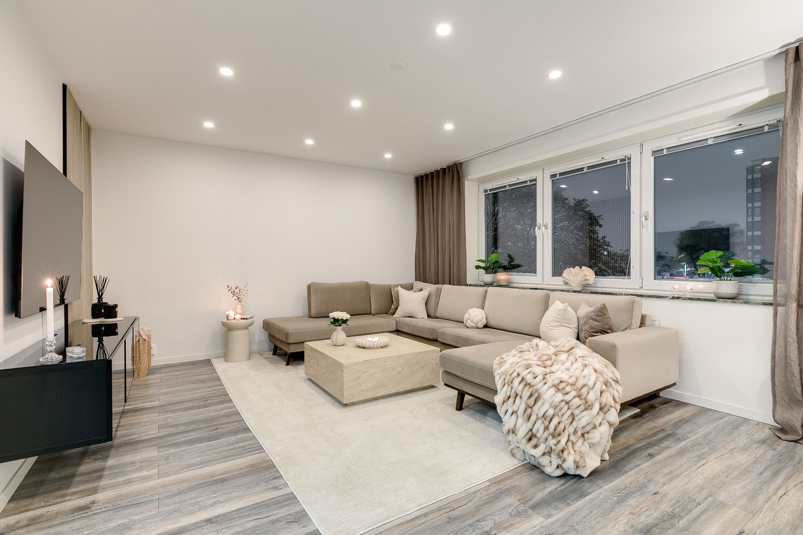 De 80,5 kvadratmetrarna erbjuder en perfekt balans mellan sociala ytor och privata rum. Här kan familjen samlas för middagar och umgänge i de öppna och lättmöblerade sällskapsytorna, medan de två rofyllda sovrummen ger plats för avkoppling och lugn. Badrummet är ett riktigt lyft – helkaklat, elegant och utrustat med både tvättmaskin och torktumlare. Här blir vardagen både smidig och behaglig. Köket från IKEA är lika praktiskt som snyggt, med moderna vitvaror, generösa arbetsytor och stilren design. Perfekt för vardagsmåltider eller när vänner och familj kommer på besök.