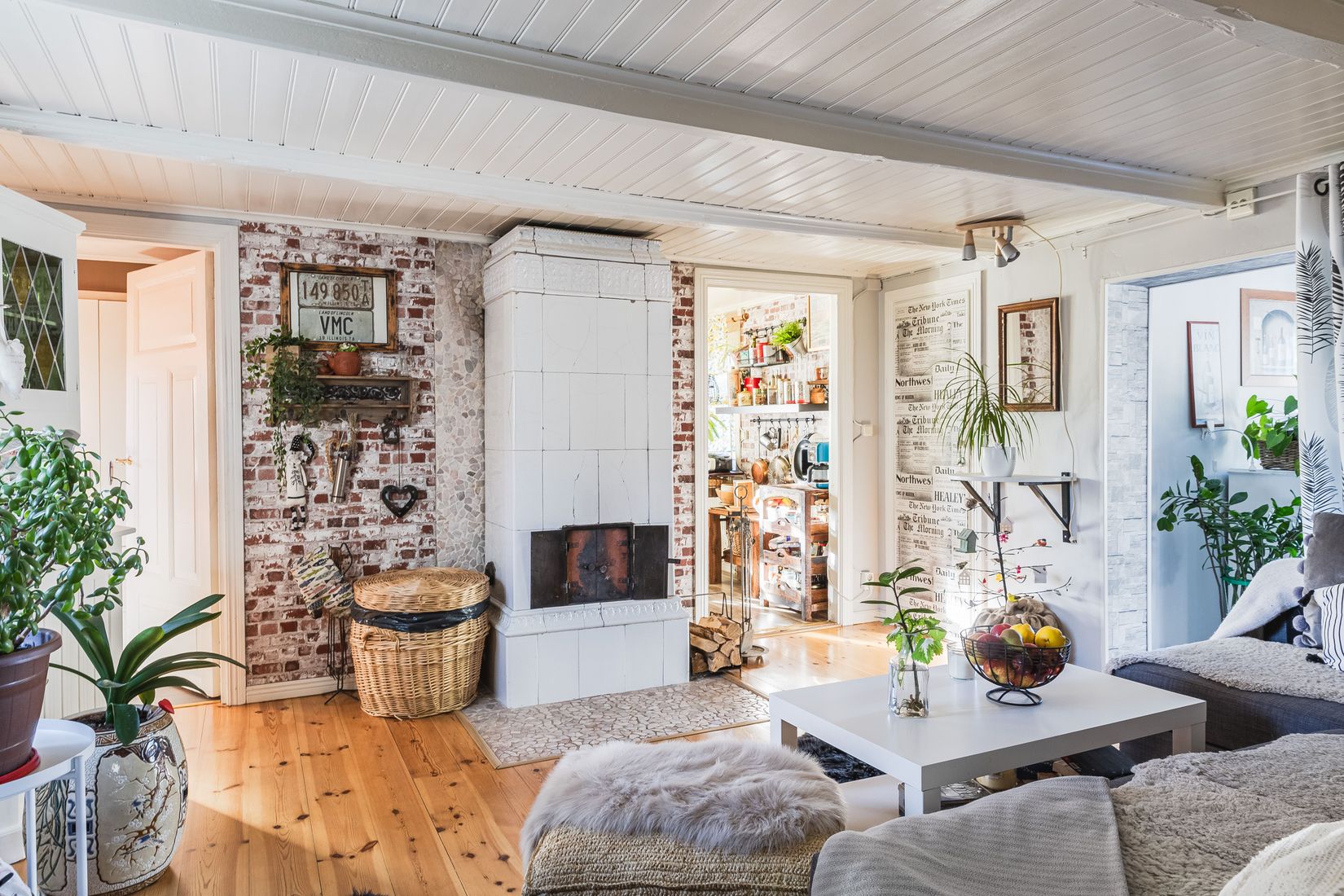 Här möts du av ett vardagsrum med en vacker kakelugn som ger både värme och trivsel. Allrummet har plats för en matgrupp, vilket gör det funktionellt för sociala tillställningar. Köket är utrustat med diskmaskin och gasspis, och badrummet erbjuder komfort med badkar, wc och golvvärme. Dessutom finns en praktisk tvättstuga med dusch.