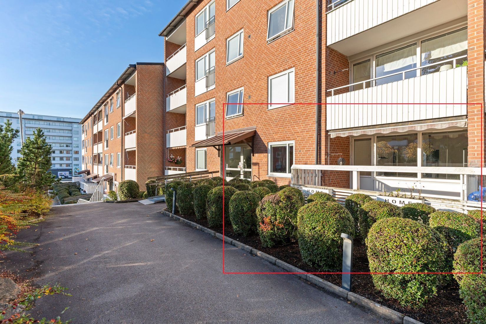 Här möts ni av en välplanerad bostad med stor uteplats och rymliga rum. Köket erbjuder bra förvaring och fina arbetsytor samt plats för ett mindre matbord.