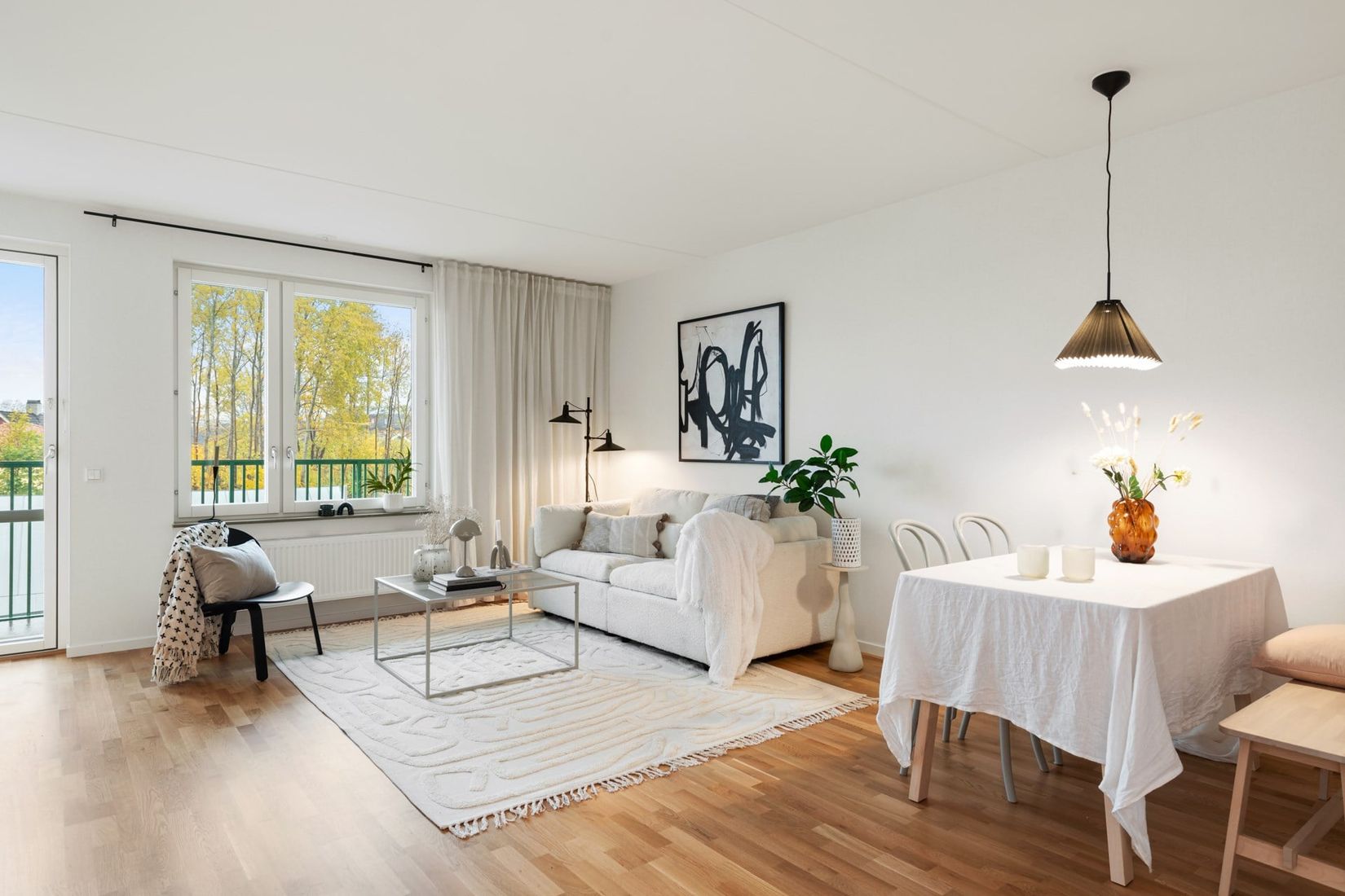 Här bor du med ett härligt ljusinsläpp, öppna sociala ytor och en stor balkong som förlänger vardagsrummet under sommarhalvåret.