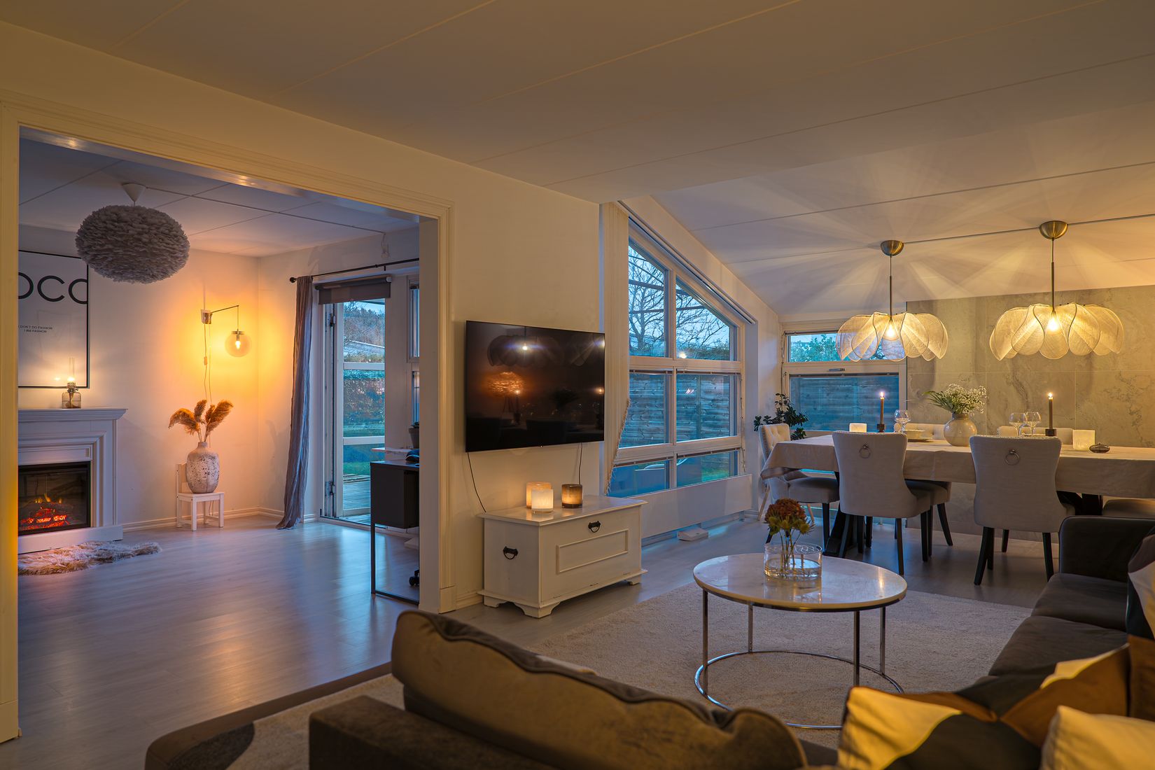 Husets hjärta är det stora vardagsrummet. Ljuset faller in från flera håll och skapar fina ytor för både middagar och soffmys. Från rummet kliver du rakt ut till trädäck och gräsmatta. Här sitter man länge under svala sommarkvällar, barnen leker på den plana gräsmattan och vännerna slår sig ner i den insynsskyddade hörnan mot staket och grönska. I anslutning finns ett allrum som vid behov kan bli ett extra sovrum.