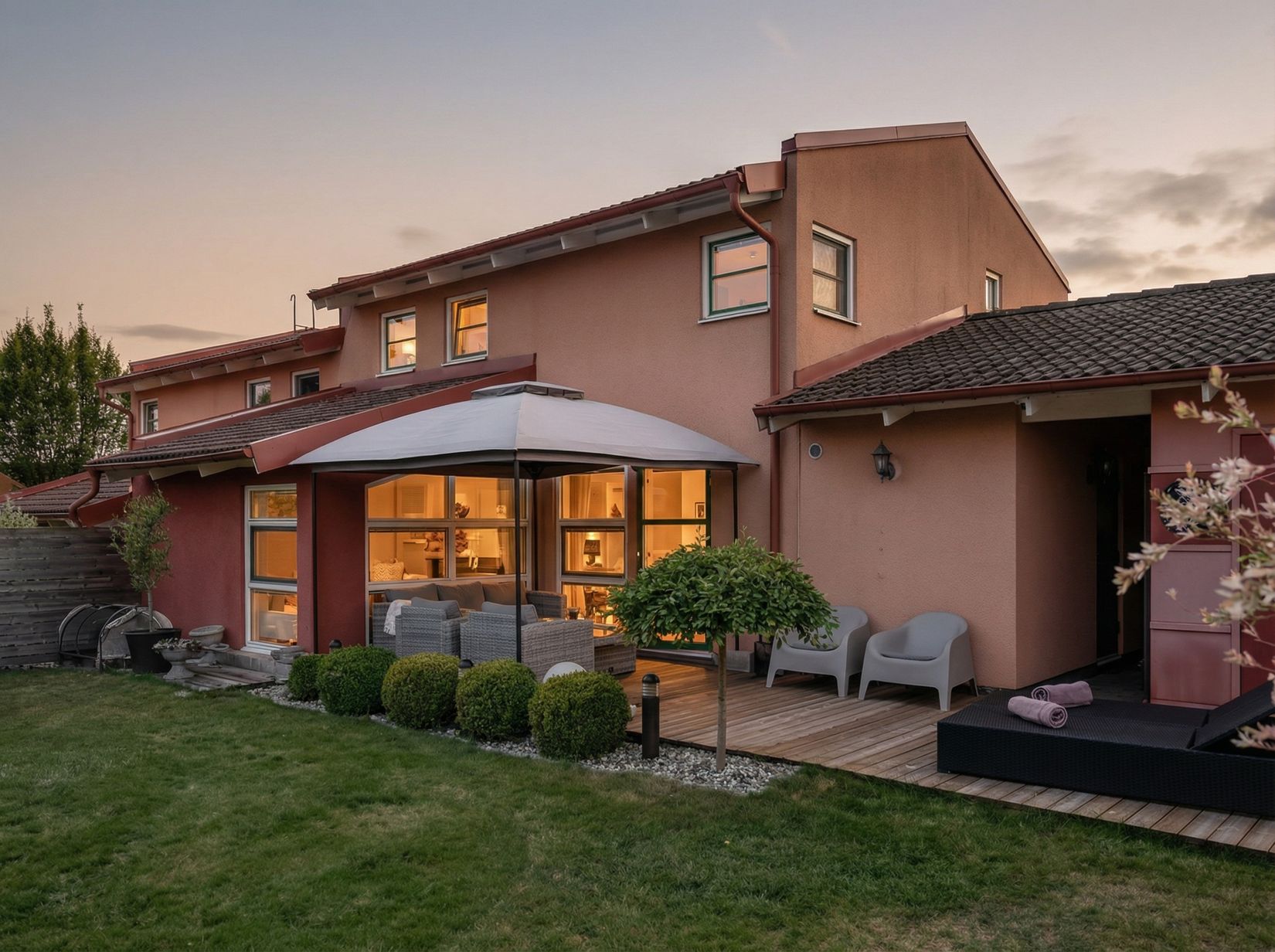 Det börjar redan på uppfarten. Två egna parkeringsplatser och en laddstolpe gör vardagen enkel. Barnen hoppar ur bilen och rusar in. Matkassarna lyfts i lugn och ro. Inga parkeringsjakter, bara raka spåret in i ett hem som är gjort för familjeliv.