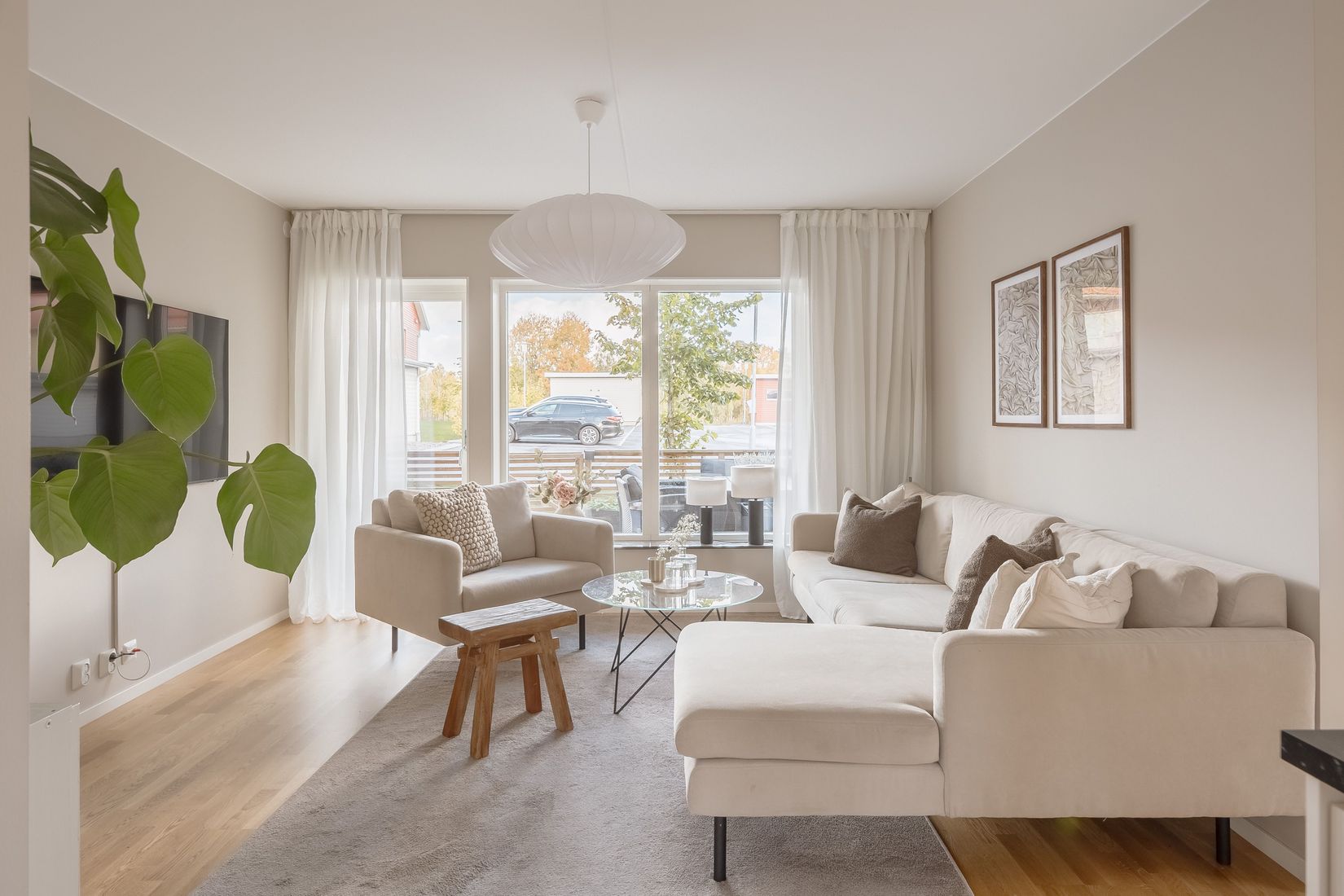 De stora fönstren i tre väderstreck ger bostaden ett härligt ljus. Golvvärme genom hela bostaden ger extra komfort året runt. Från vardagsrummet når du den generösa uteplatsen– perfekt för morgonkaffet, middagar i kvällssolen eller bara en stunds avkoppling.