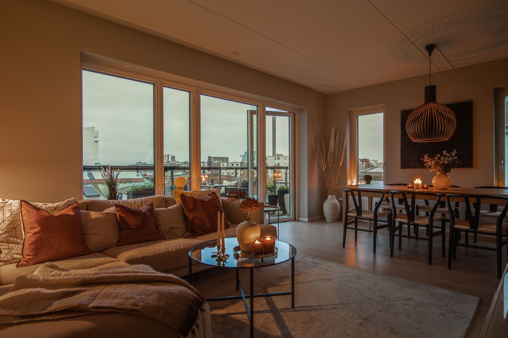 Utöver allt det fina med själva bostaden erbjuder föreningen en mysig innergård, en stor takterrass med sittgrupper och grillmöjligheter samt två övernattningslägenheter för gäster. Här kan ni njuta av utsikten som sträcker sig hela vägen från Ribersborg till Malmö Live.