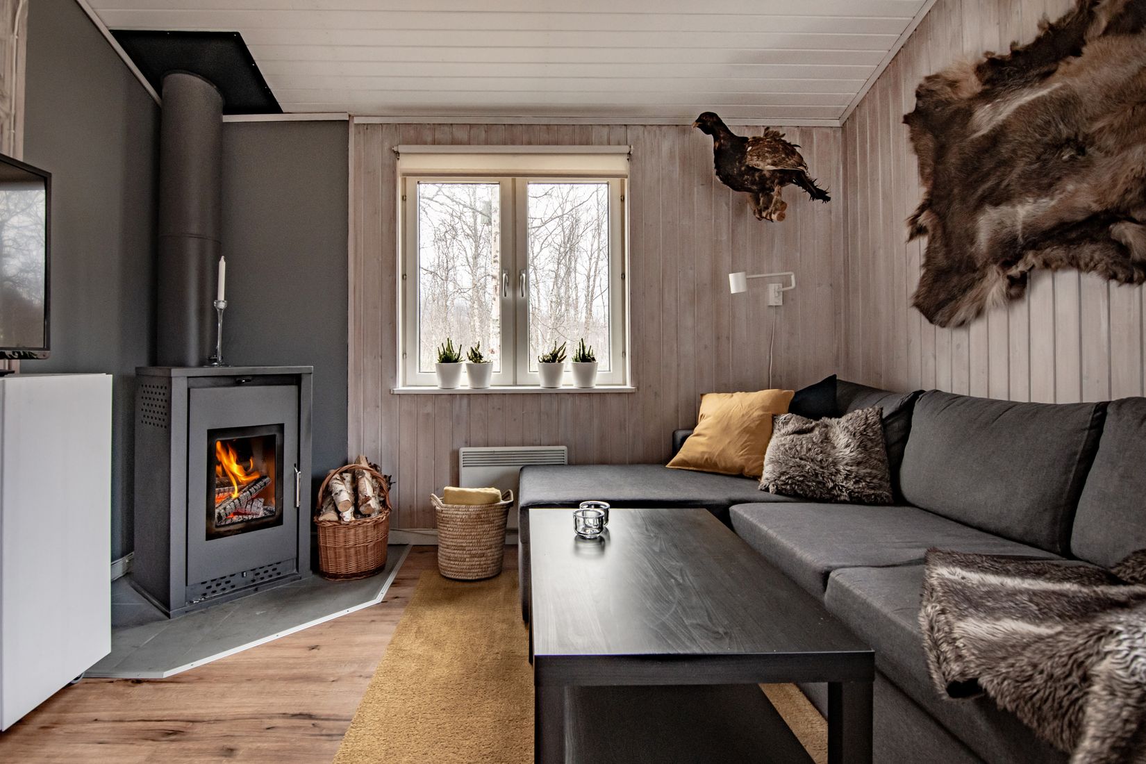 Alla möbler som finns i stugan ingår i köpeskillingen.