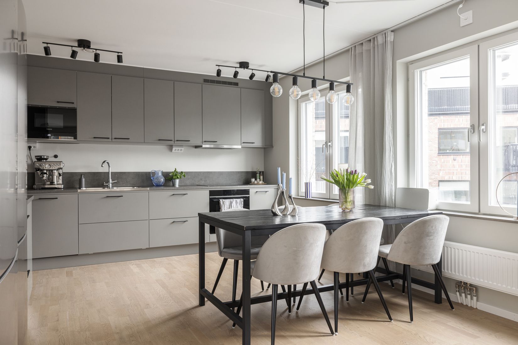 Inom kort ges det tillfälle att förvärva denna ljusa 4-rumslägenhet om 87 m² på våning 5 av 8 med två balkonger i varierande lägen. Detta hem erbjuder ett kvalitativt kök från Vedum som håller hög standard. Kökets öppenheten ger utrymme för middagar med familj och vänner och skapar en luftig känsla. Vardagsrummet är stort med fönster i två väderstreck som släpper in ljus och ger energi till denna trivsamma bostad. Här erbjuds även två härliga balkonger med varierande lägen i såväl öster som söder. Master bedroom är rymligt och har ett rofyllt läge med generösa förvaringsmöjligheter. De två mindre sovrummen passar utmärkt som barnrum, gästrum eller kontor. Sobert badrum med egen tvätt-avdelning samt gäst-wc. Hallen erbjuder exemplariska förvaringsmöjligheter genom flertalet garderober till höger i hallen.
