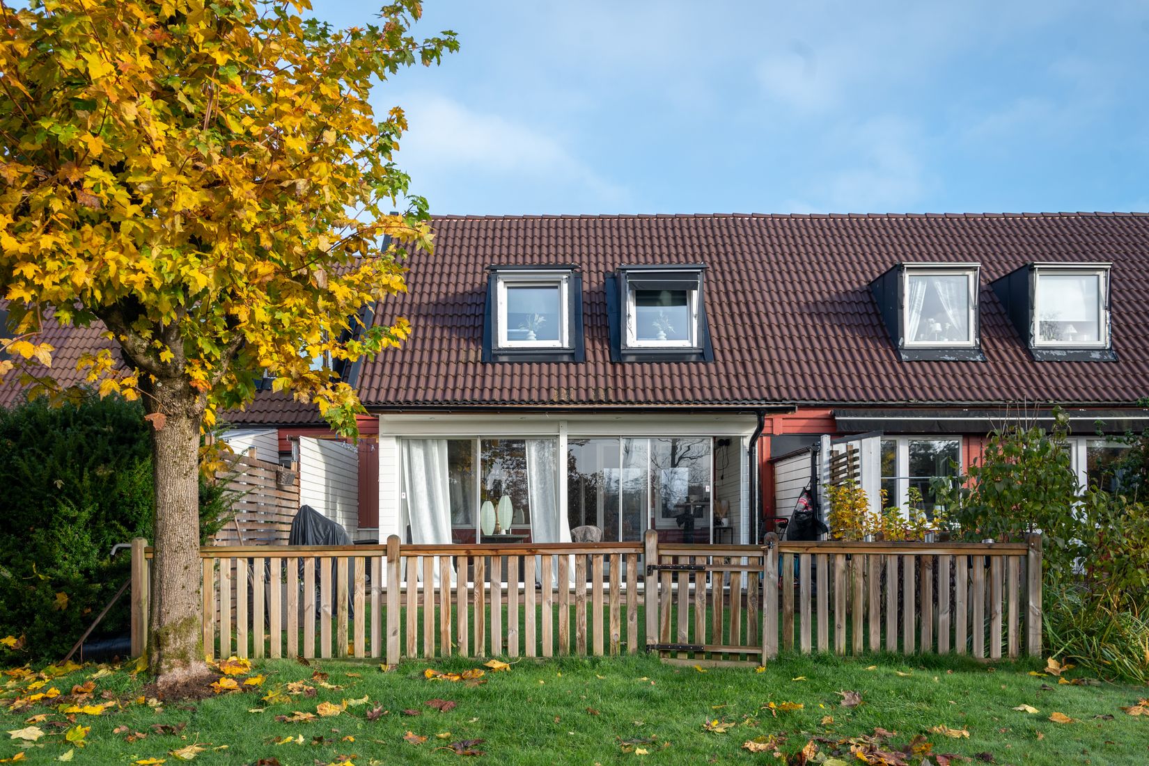 Uteplatsen och den lättskötta trädgården bjuder på härliga soltimmar och plats för både grill och utemöbler. Nya fönster och balkongdörr i vardagsrummet 2024 samt byte av tak 2019.