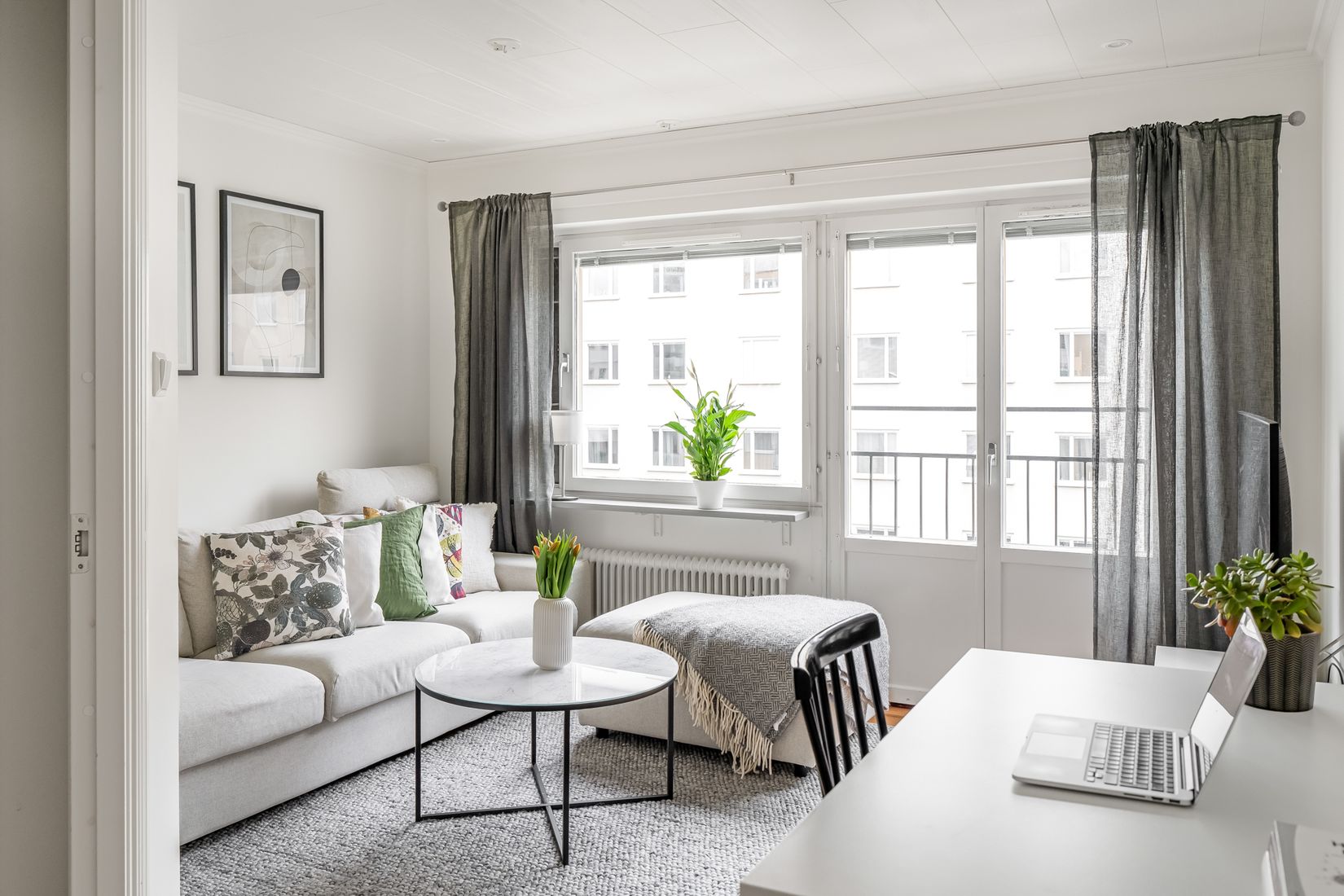 -Fransk balkong och stora fönsterpartier med rikligt ljusinsläpp