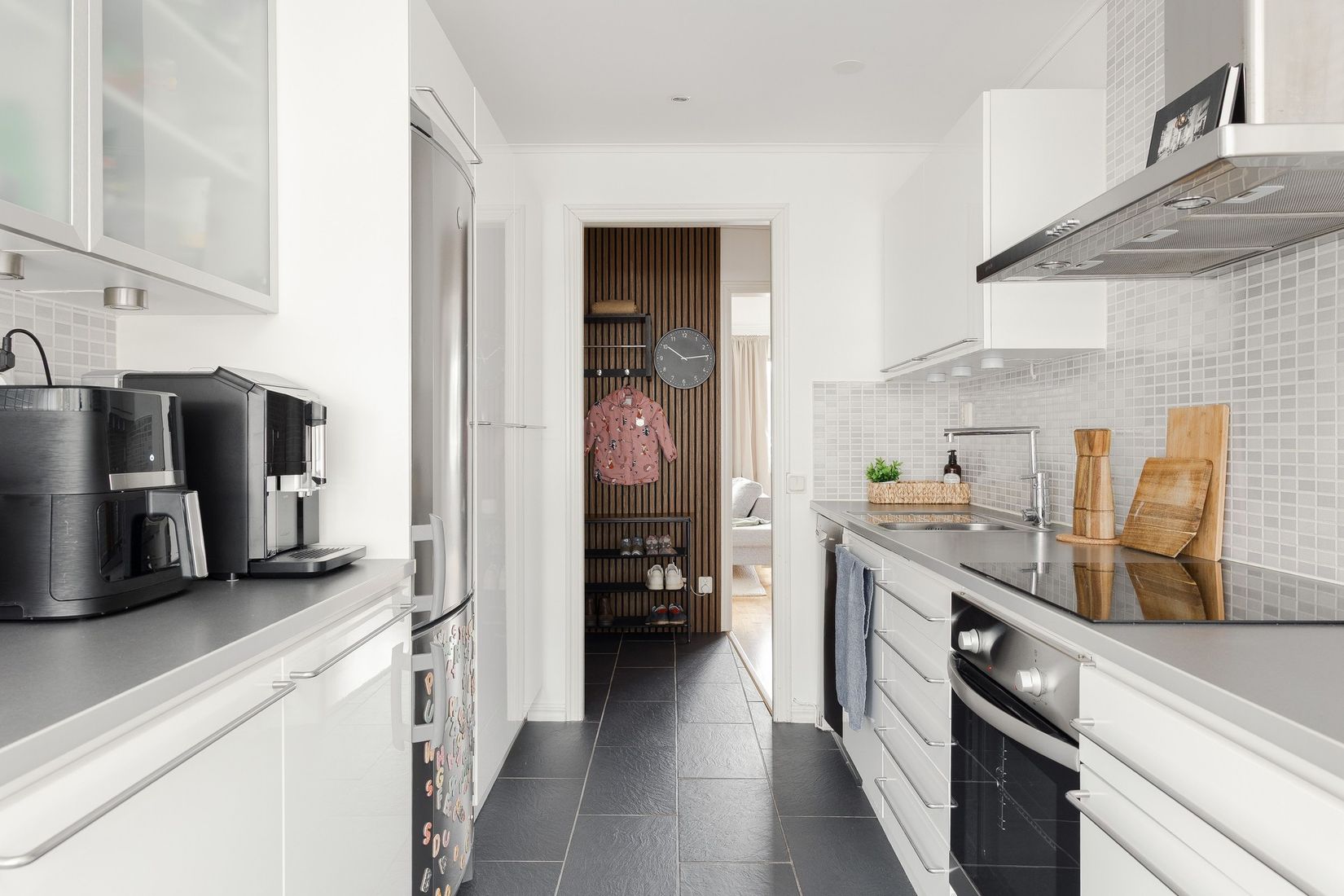 Vidare finns här ett inbjudande och fullutrustat kök som erbjuder bra förvaring och gott om plats för ett rejält matbord – här samlas både familj och vänner med glädje. Vardagsrummet imponerar med härlig umgängesyta och det underbara ljusinsläppet. Badrummet är stort och stilrent renoverat där man byggt ihop tvättavdelningen med badrummet.