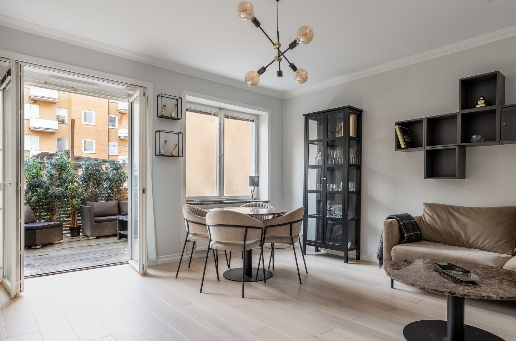 Välkommen hem till denna fina och välrenoverade funkistvåa på Grevgatan 40. Lägenheten ligger högt upp på en halv trapp och disponeras med genomgående planlösning.
