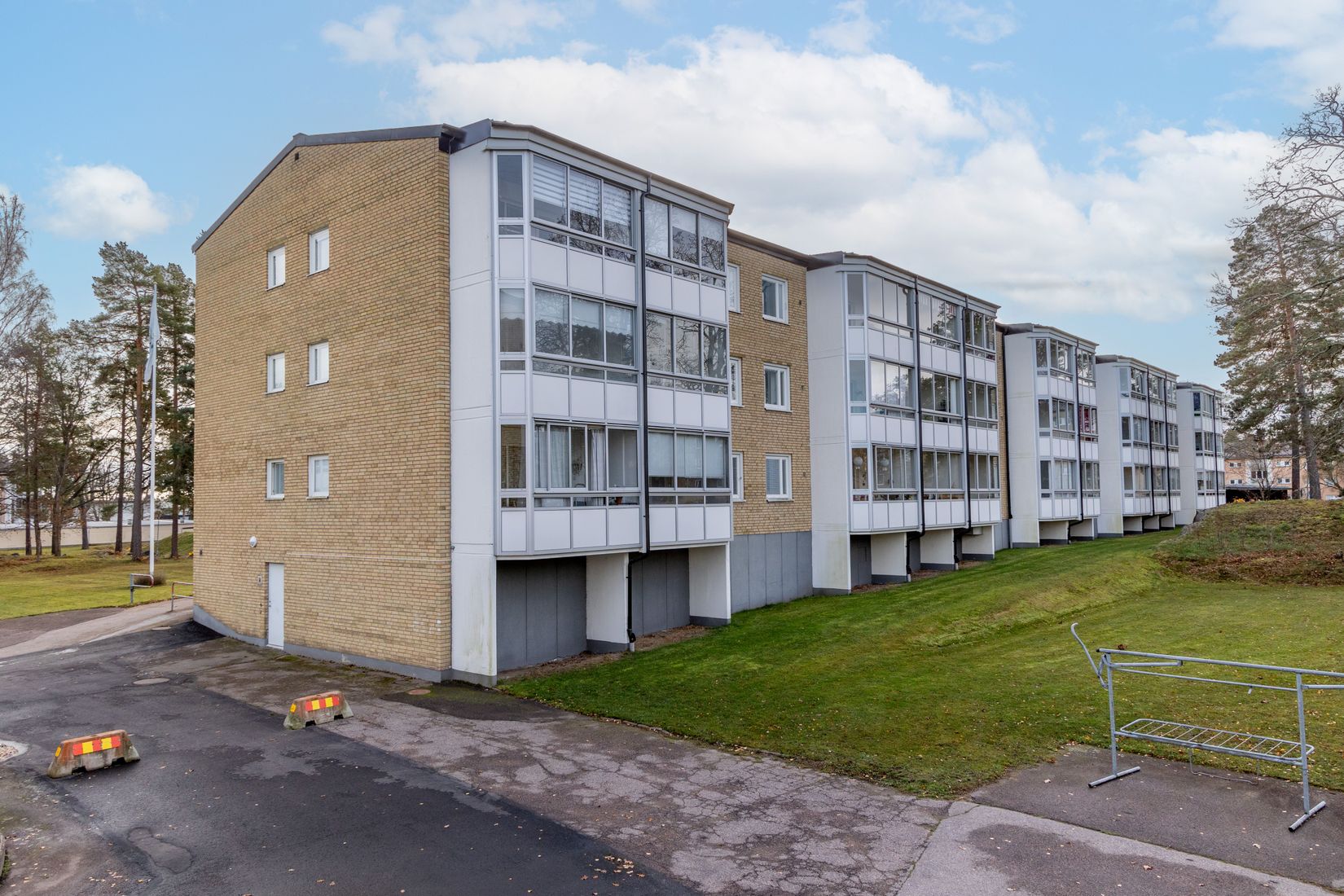 Den välkomnande hallen imponerar direkt med hela sju garderober – här finns plats för både kläder och vardagsprylar utan att kompromissa med ytan. Det rymliga vardagsrummet bjuder på stora fönsterpartier som släpper in rikligt med dagsljus och skapar en luftig känsla. Härifrån nås den inglasade balkongen – en perfekt plats att njuta av morgonkaffet eller en lugn kväll på årets varmare månader.