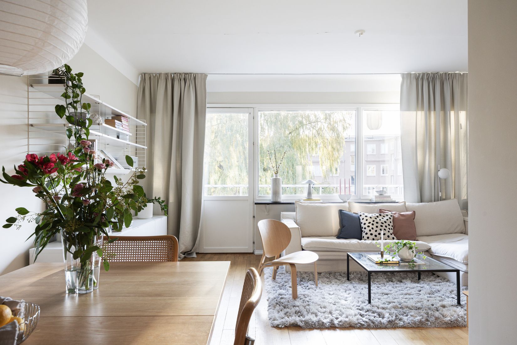 Den generösa vardagsrummet bjuder in till både umgänge och avkoppling. De stora fönsterpartierna mot den soliga söderbalkongen skapar ett underbart ljusinsläpp och gör rummet till bostadens naturliga samlingspunkt. Här ryms både soffgrupp, läshörna och matplats.
