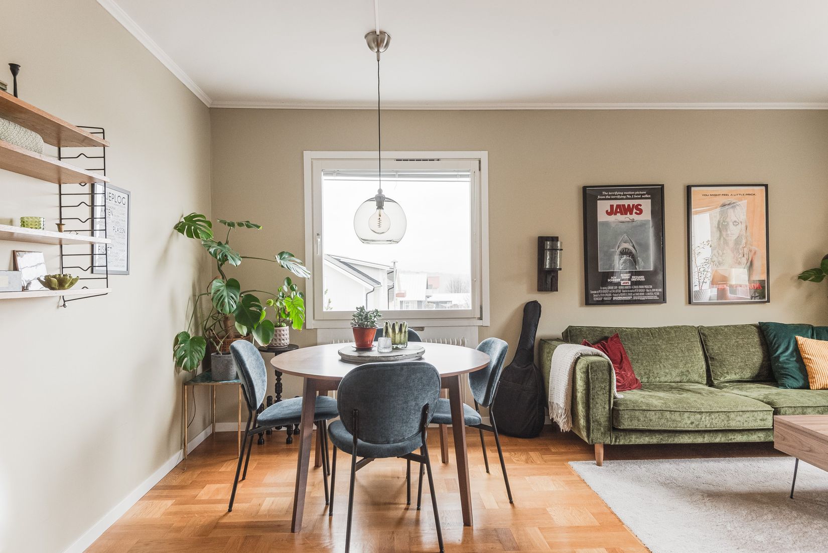 Här möts du av varma färgsättningar, genomtänkta materialval och ett hem där det är lätt att trivas från första stund.