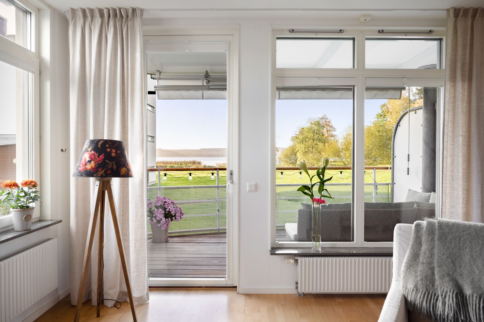 Den praktsika planlösningen är fördelad på 98 kvadratmeter och erbjuder ytor som bjuder in till umgänge. Det luftiga vardagsrummet ligger i öppen planlösning mot kök och matplats, vilket skapar en ljus och inbjudande atmosfär. Ett stort sovrum med utgång till uteplats i markplan, ett allrum, ytterligare ett sovrum, badrum med dusch, gästtoalett och en praktisk klädkammare. Här kan du, oavsett om du sitter vid matbordet i köket, i soffan i vardagsrummet eller på någon av de fina två fina uteplatserna, njuta av en sagolik vacker utsikt.