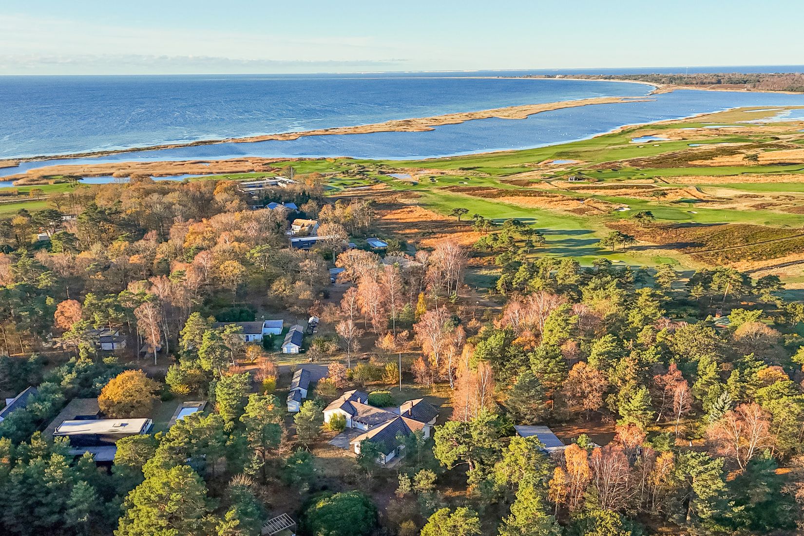Doften av hav och blommade ljung letar sig in mellan tallar och lövträd i den stora och insynskyddade trädgården. Den vita trävillan ligger på privat och skyddat läge med Ljunghusens golfbana runt knuten.