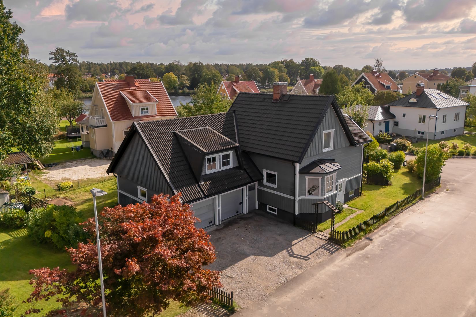 Här hittar du en rymlig familjevilla, på hörntomt med dubbelgarage, där flertalet stora renoveringar har utförts. Man har bytt taket med ny läkt, papp och pannor, bytt fönster, bytt fasaden och dränerat. Man har också låtit bygga ut huset i etapper och bland annat byggt ett dubbelgarage med en våning ovanför garaget och byggt ut ett burspråk i köket. Allt för att maximera yta och komfort.