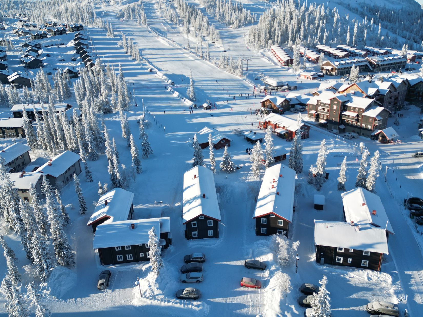 Lägenheten belägen i entréplanet rymmer fyra sovrum och två badrum. Bostadens samlingsplats är köket och allrummet som med en öppen planlösning rymmer matgrupp och soffgrupp. På vardera sida om allrummet ligger två sovrum och ett badrum. Det ena sovrummet med våningssäng och det andra med plats för dubbelsäng. Båda badrummen erbjuder duschmöjlighet och har ytskikt i kakel och klinker. I det större badrummet finns både bastu och tvättmaskin. I denna lägenhet kan fjällvistelsen bli lång och rymmer många gäster!