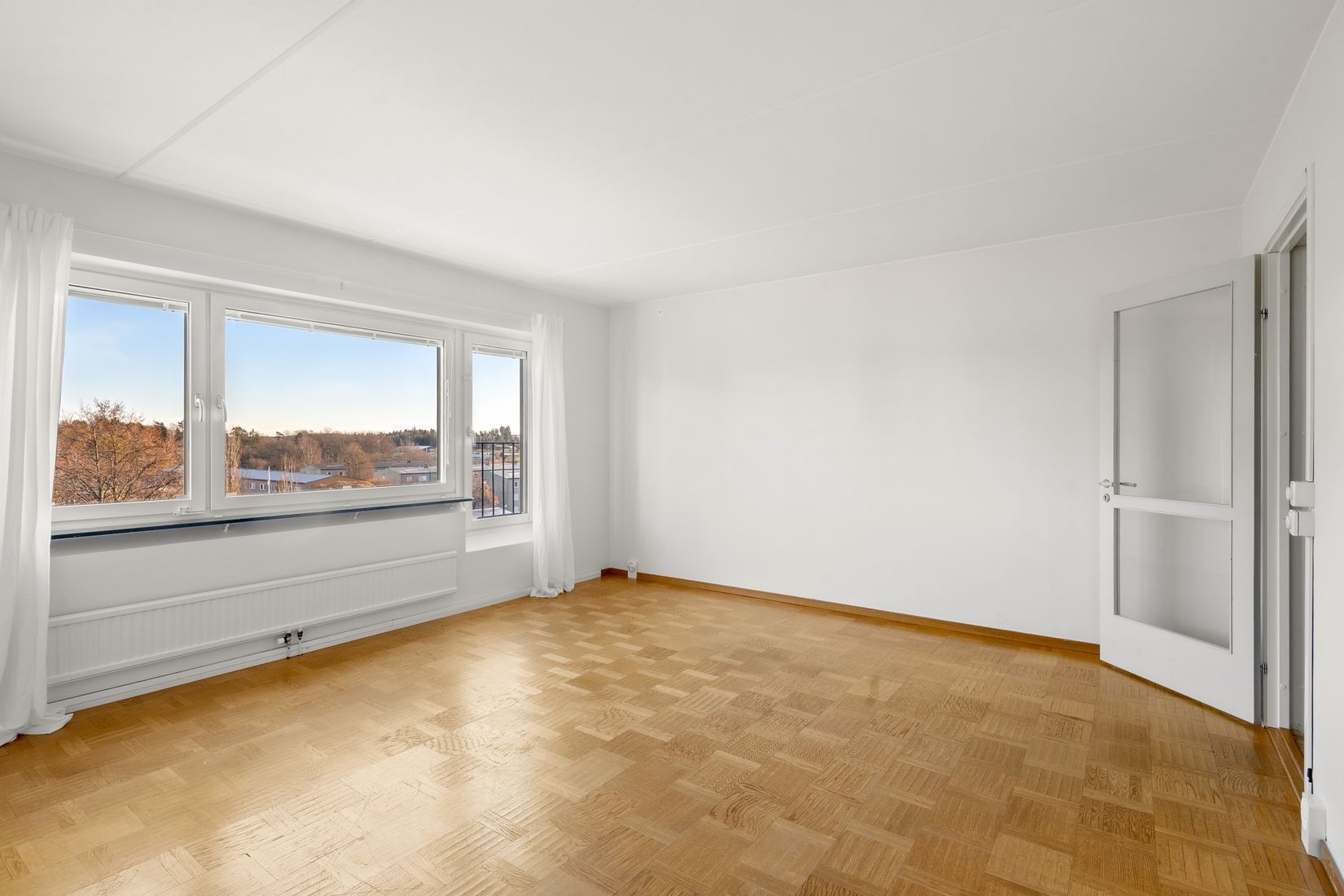 Det stora vardagsrummet badar i ljus tack vare generösa fönsterpartier och erbjuder gott om plats för både soffhörna, matsalsdel och sociala ytor. Väggarna är nyligen målade i ljusa, harmoniska färger som ger ett fräscht och inbjudande intryck – en perfekt plats för avkoppling och umgänge med familj och vänner.