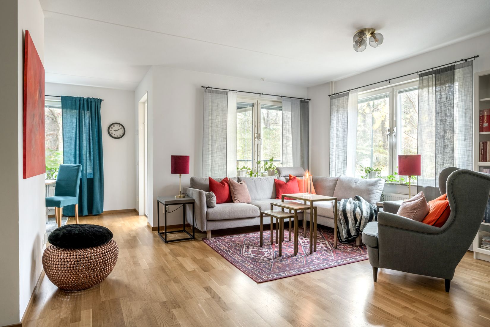 Lägenheten präglas av en öppenplanlösning och känslan förstärks ytterligare genom den inglasade balkongen om ca 6 kvm, hög standard, bra med förvaring samt ett stort ljusinsläpp. Den öppna planlösningen mellan kök och vardagsrum tillåter stora middagar och umgänge med nära och kära. Stilrent badrum i sobra färger med tvättmaskin och torktumlare. Rymligt master bedroom, sovrum 2 och 3 i fil. Alla sovrum är vända mot grönska.