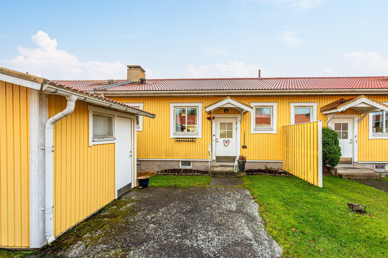 Bostadsrätt i 2 plan med bra läge och stor altan. Bostadsrätten erbjuder 2 sovrum, vardagsrum med utgång till stor altan, gillestuga, renoverad dusch/wc, trivsamt kök mm. Här finns ett förråd på framsidan samt ett soldäck med nytt golv. På baksidan finns en liten trädgård nedanför den stora altanen.