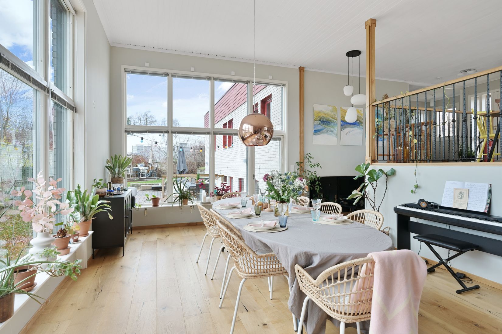 Huset bjuder på generösa sociala ytor, stämningsfull öppen spis, fem rogivande sovrum och två badrum samt gäst-WC. Köket ligger centralt placerat i huset med stora fönsterpartier och balkong.
