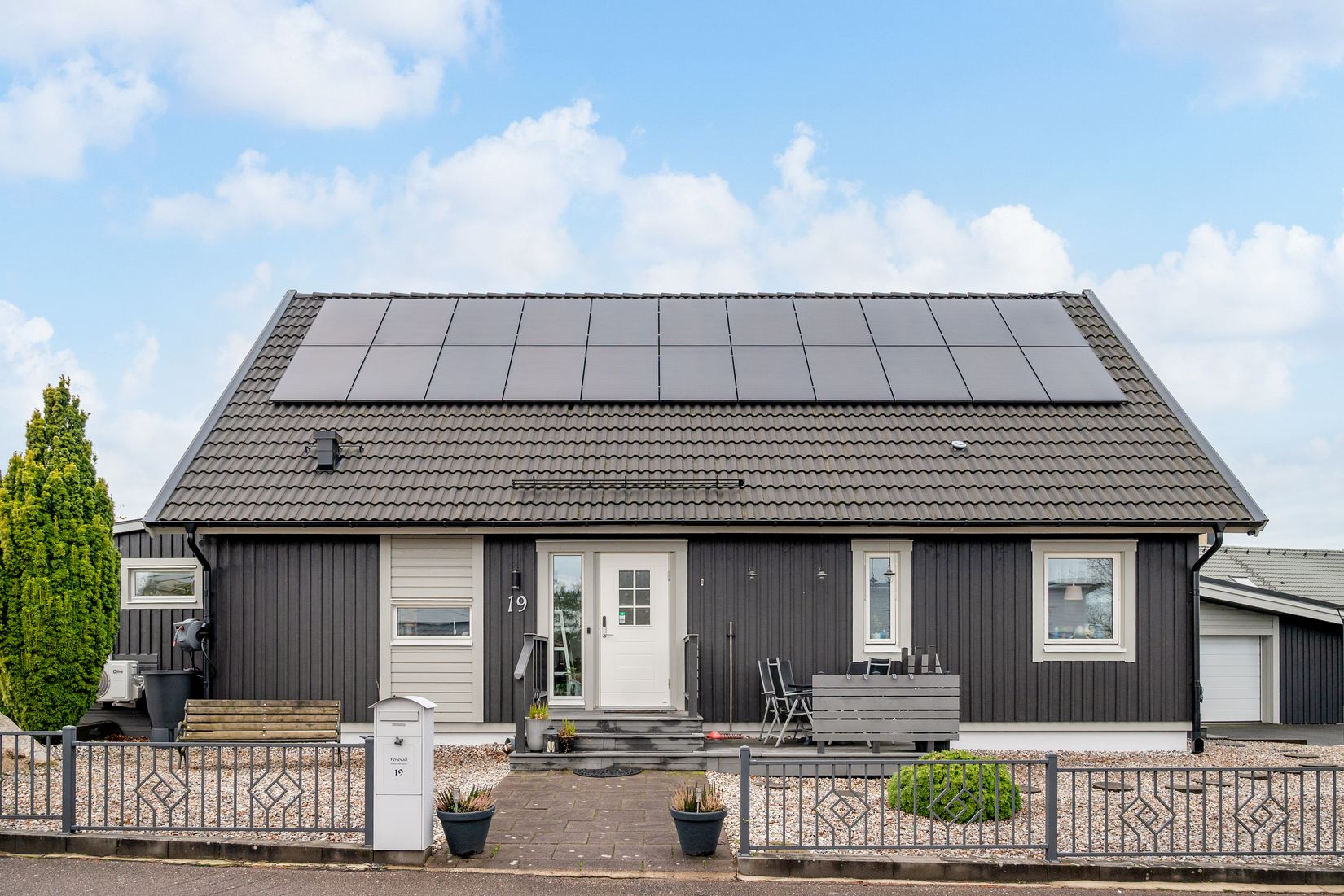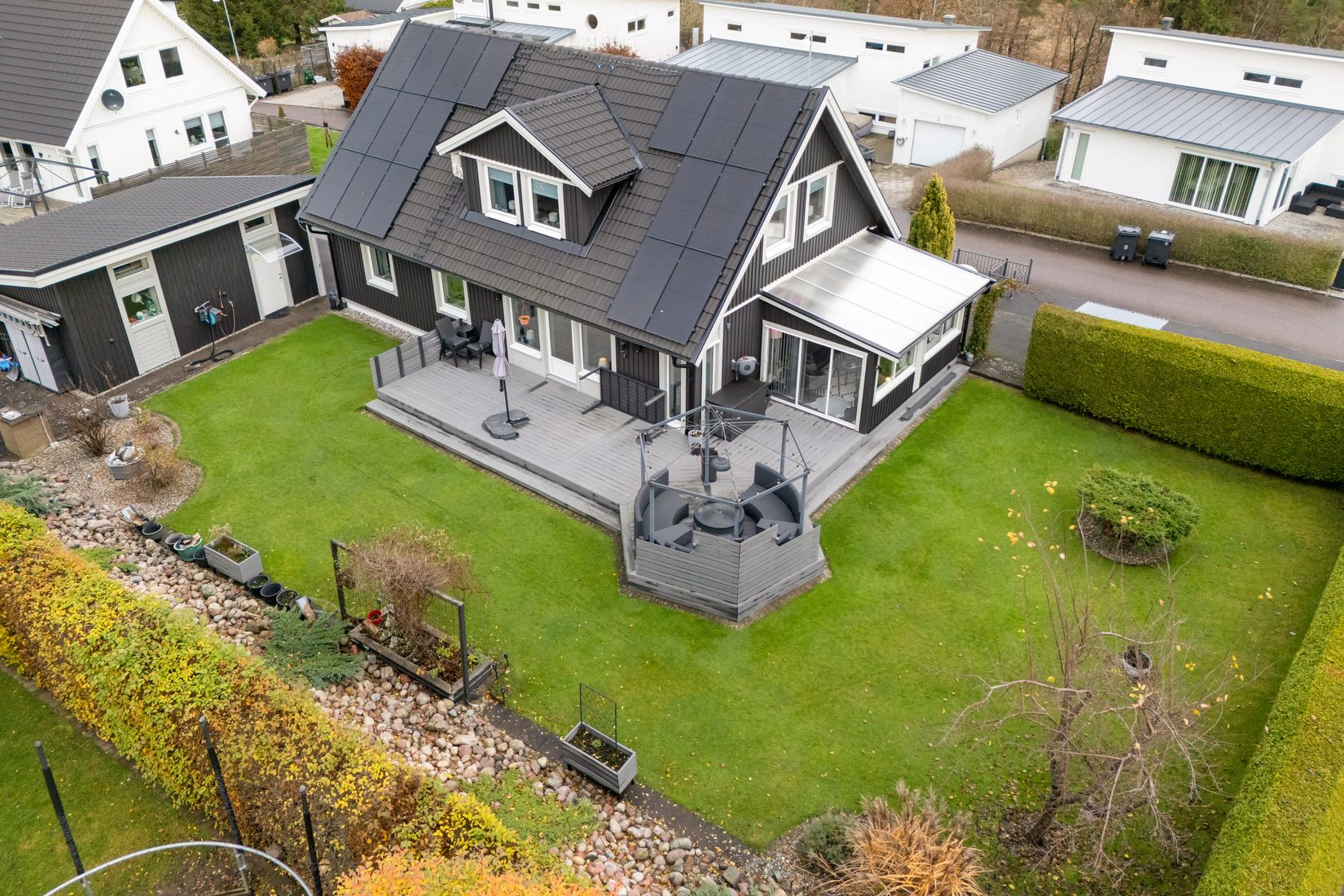Med natursköna omgivningar som inramning möter ni här en modern, framtidssäkrad och rymlig villa som kombinerar stil, funktion och harmoni på bästa sätt. De stora fönsterpartierna släpper in generöst med ljus och skapar en underbar känsla av rymd och öppenhet, där ute och inne smälter samman i perfekt balans.