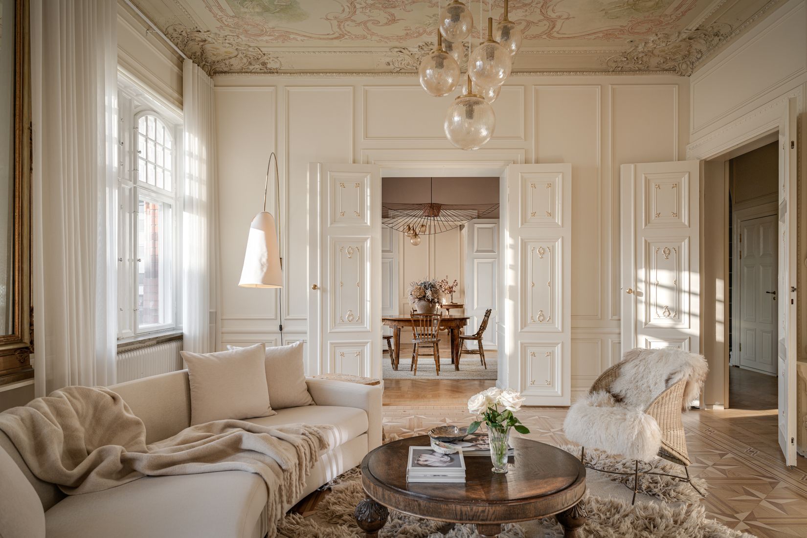 Gatlyktornas gyllene sken glittrar under en klar hösthimmel. Rader av gathus i en färgglad palett radar upp sig utanför djupa bågformade fönster. Inne i lägenheten på andra våningen är stämningen hög. Högklackade slingbacks och polerade skor rör sig genom salongerna medan grammofonspelaren spelar dämpade toner. De halvbrunna stearinljusen på borden och fönsterbänkarna får takens ornamenteringar extra liv och glans. Det är som om tiden har stått still men samtidigt inte. Här möts historia och samtid på ett exceptionellt vis, genom vart och ett av de storslagna rummen.