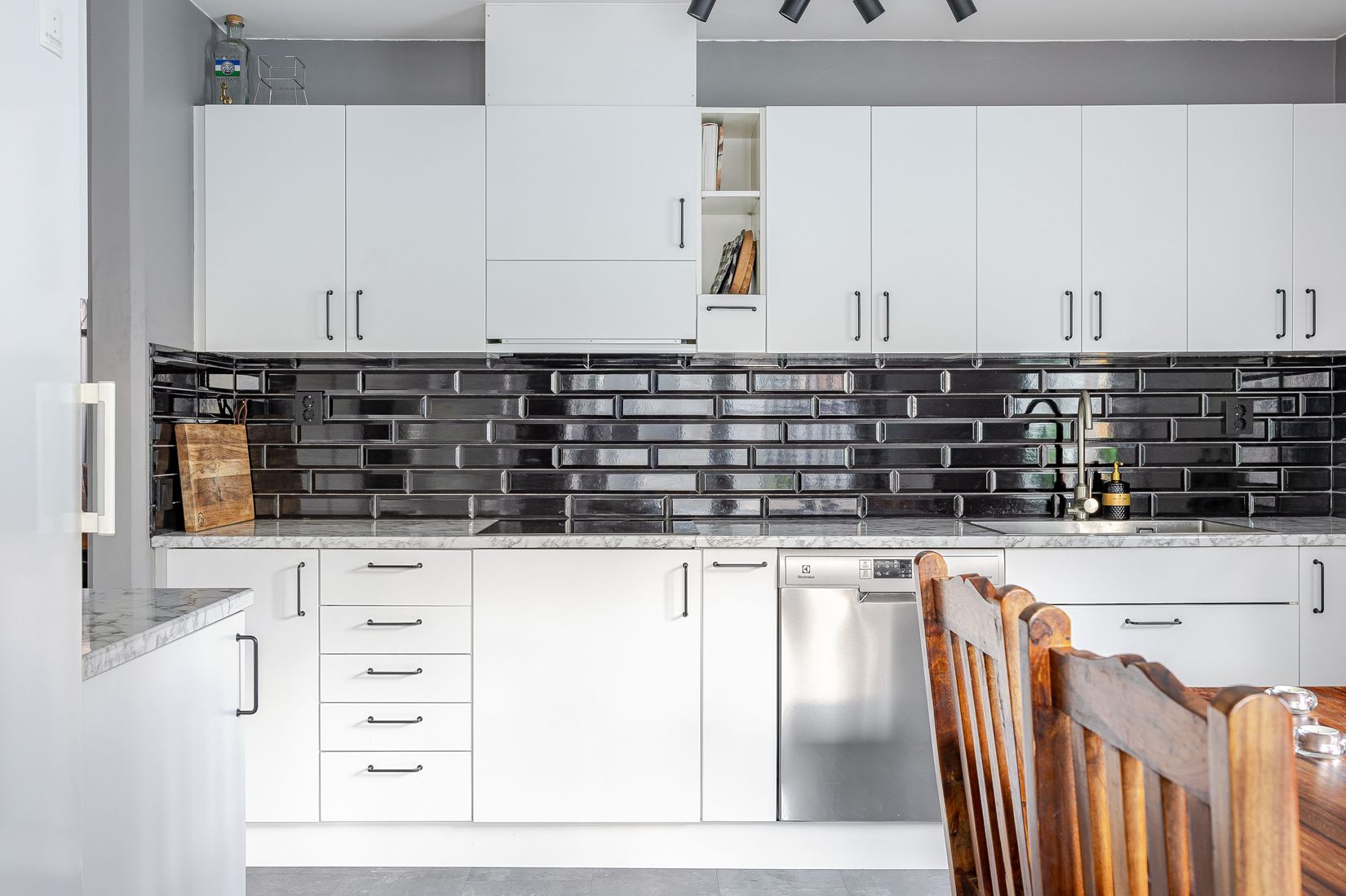 Välkommen till denna smakfullt renoverade tvåa, där stilrena ytor och generöst utrymme skapar en välkomnande känsla. Boendet är elegant inrett med mjuka gråa och vita toner som framhäver en sofistikerad atmosfär. Köket är utrustat med moderna vitvaror och erbjuder rikligt med plats för matlagning och har praktiska förvaringslösningar bakom sina vita luckor.