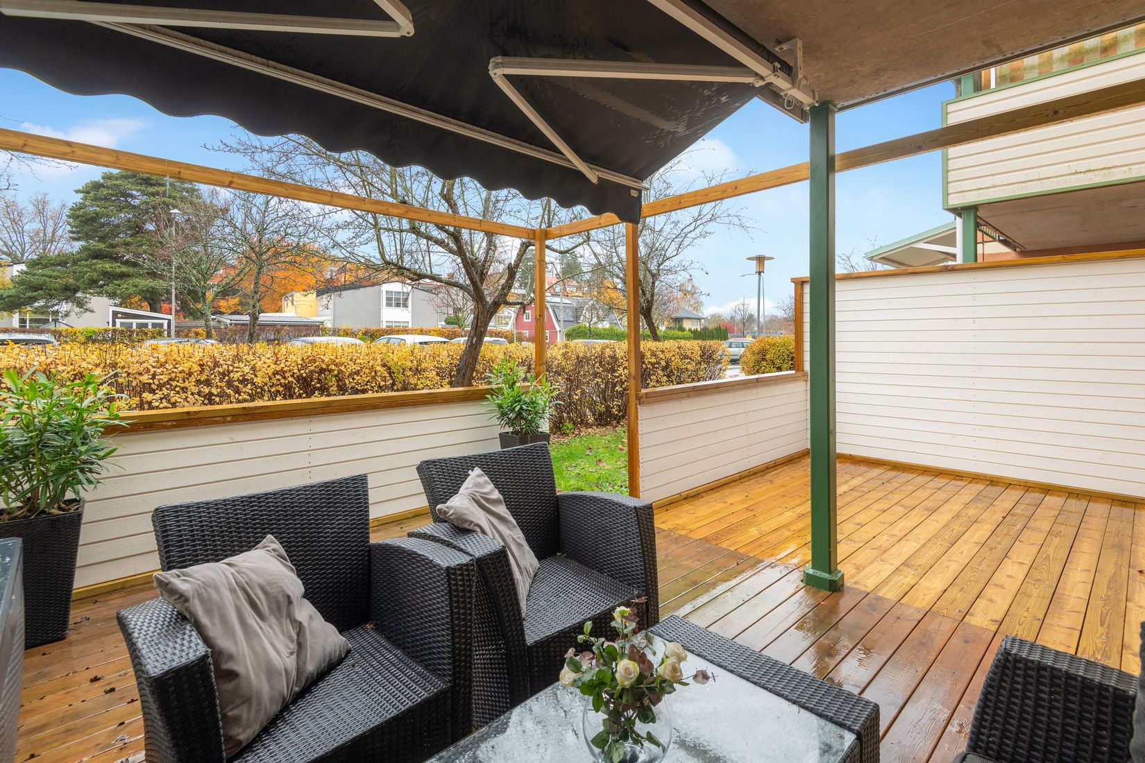 Nu har du chansen att bli ägare till en oerhört trevlig lägenhet på ca 94 kvm i ett lugnt och attraktivt område! Renoverad lägenhet med snyggt badrum, stilrent kök med utgång till trädäckad uteplats, tre sovrum, möblerbar hall, klädkammare, extra WC och ett stort vardagsrum med utgång till ännu större utplats i bästa solläge.