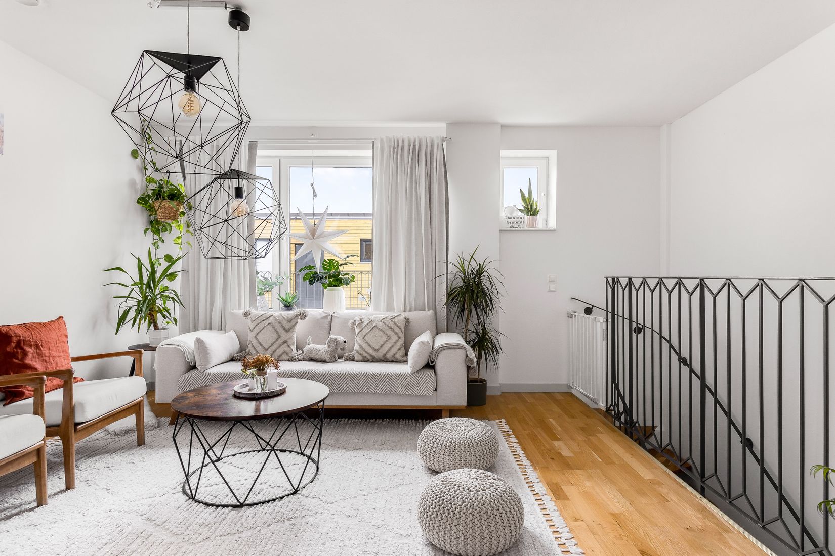 Välkommen till ett hem som verkligen sticker ut! Denna exklusiva tvåvåningslägenhet kombinerar modern design med genomtänkt planlösning och fina materialval. Här möts du av ljusa, fina ytskikt, ett generöst ljusinsläpp och en trivsam atmosfär.
