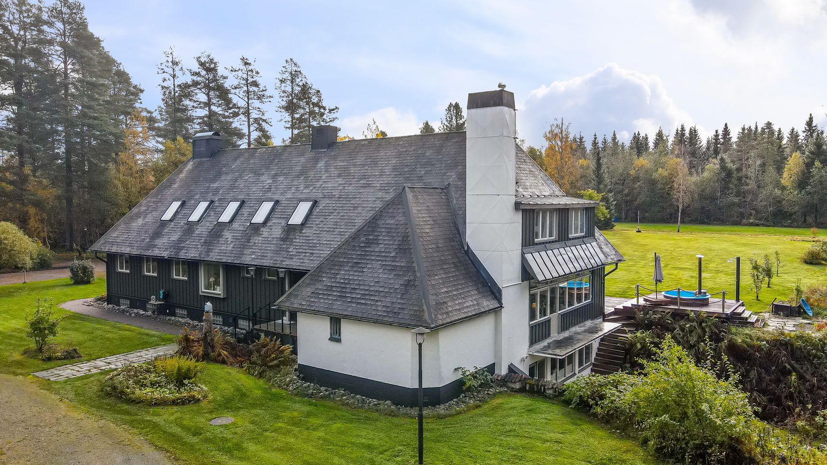 Denna representativa villa erbjuder bland annat stora sällskapsytor, flera eldstäder, renoverat kök och hela sex sovrum i huvudbyggnaden. Här möts charm, historia och modern komfort i perfekt balans! Dessutom finns här även ett tjusigt bibliotek, mysigt biorum och ett gym som skapar ett hem utöver det vanliga. Huset har flera härliga uteplatser i varierande storlek och sollägen! Bland annat finns en stor altan i söderläge.