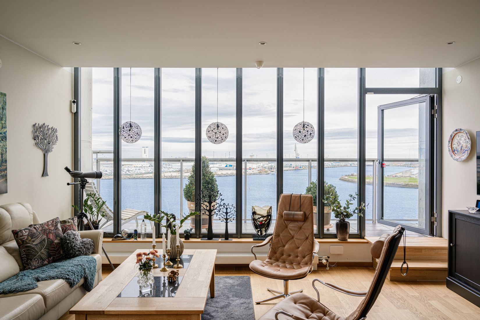 Dofter av salt hav, öppen himmel, marinaliv och ändlösa kajkanter. Sommarmingel och långa helgfrukostar på terrass och balkong. Här, på sjätte och högsta våningsplanet är känslan av frihet stor, trots det centrala läget. Den ostörda utsikten är en starkt bidragande faktor, liksom Öresunds närvaro som skänker lugn. När du tassar ut i köket för att brygga din första kopp kaffe är det naturens eget skådespel som uppenbarar sig framför de stora fönsterna. En magisk förening av öppet himlavalv och rofyllt hav med solstrålarnas skimmer som ligger likt ett strössel ovan vattenytan.