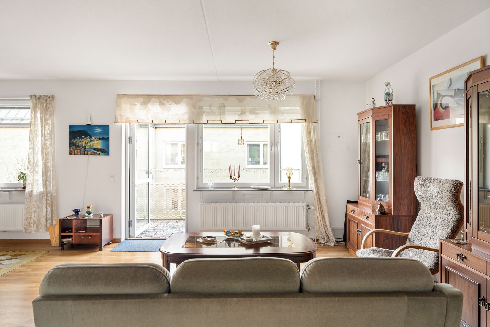 Välkommen till Bergsbovägen 14 och till denna fantastiska bostad belägen på tredje våningen. Bostaden är rymlig och välplanerad och har dessutom en stor solig balkong. Här kan du skapa ditt egna gröna hörn och bara koppla av och njuta av tillvaron. Det höga läget i huset gör att mycket ljus släpps in genom fönstren och ger en känsla av rymd. Bostaden fördelar sig på en stor och rymlig hall med hatthylla och skoställ. Vidare leder hallen in till ett generöst kök och vardagsrum i öppen planlösning som skapar en inbjudande och social yta. Köket är väl utrustat med bland annat vitvaror från Husqvarna. Bostaden har idag 2 stycken väl tilltagna sovrum samt ytterligare två walk-in-closets. Master bedroom ligger dessutom avskilt mot den lummiga innergården. Vidare finns även två stilrena badrum där ena är utrustat med dusch och den andra med badkar, perfekt för den stora familjen som behöver samsas på morgnarna!