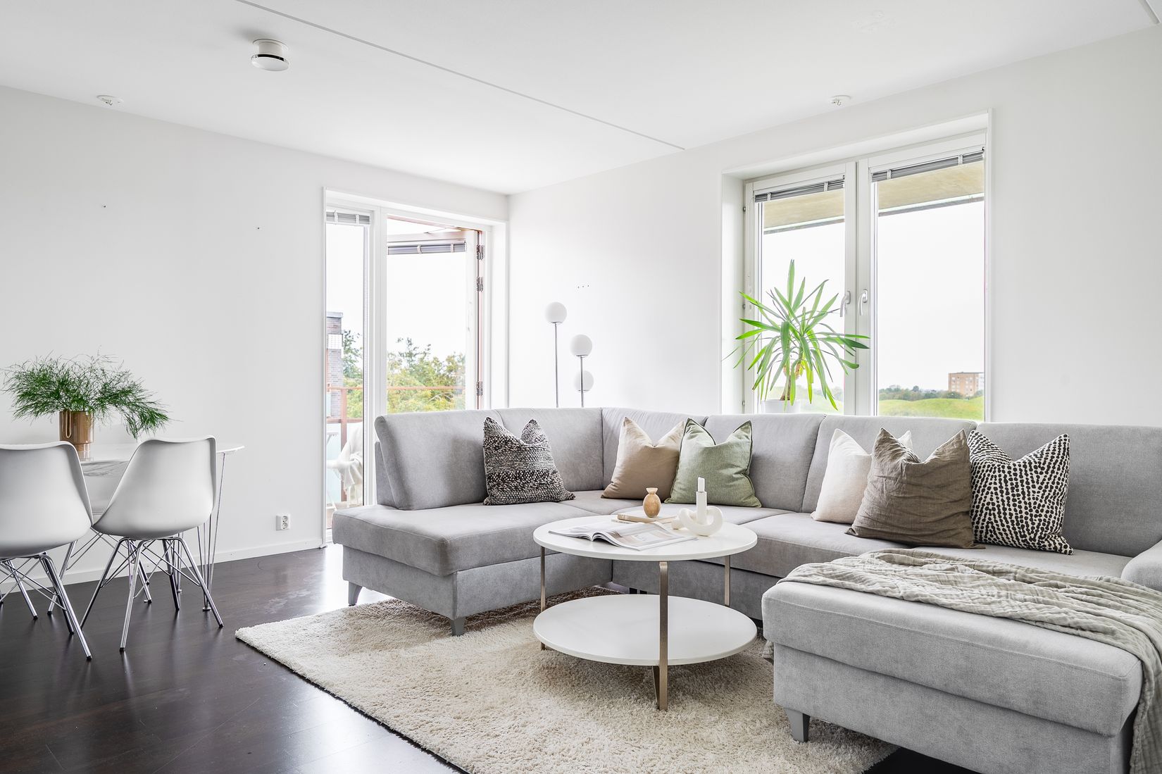 Ytpraktisk och oerhört ljus hörnlägenhet med vacker utsikt över såväl det nybyggda torget utanför som de fina Holmakullarna. Här är all inredning sedan 2015 och bekvämligheten är på topp då man har hiss från markplan, gott om förvaring ett fullt utrustat kök samt tvättmaskin och torktumlare i ett stort badrum. Dessutom ligger den stora öppna balkongen i härligt sydvästläge!