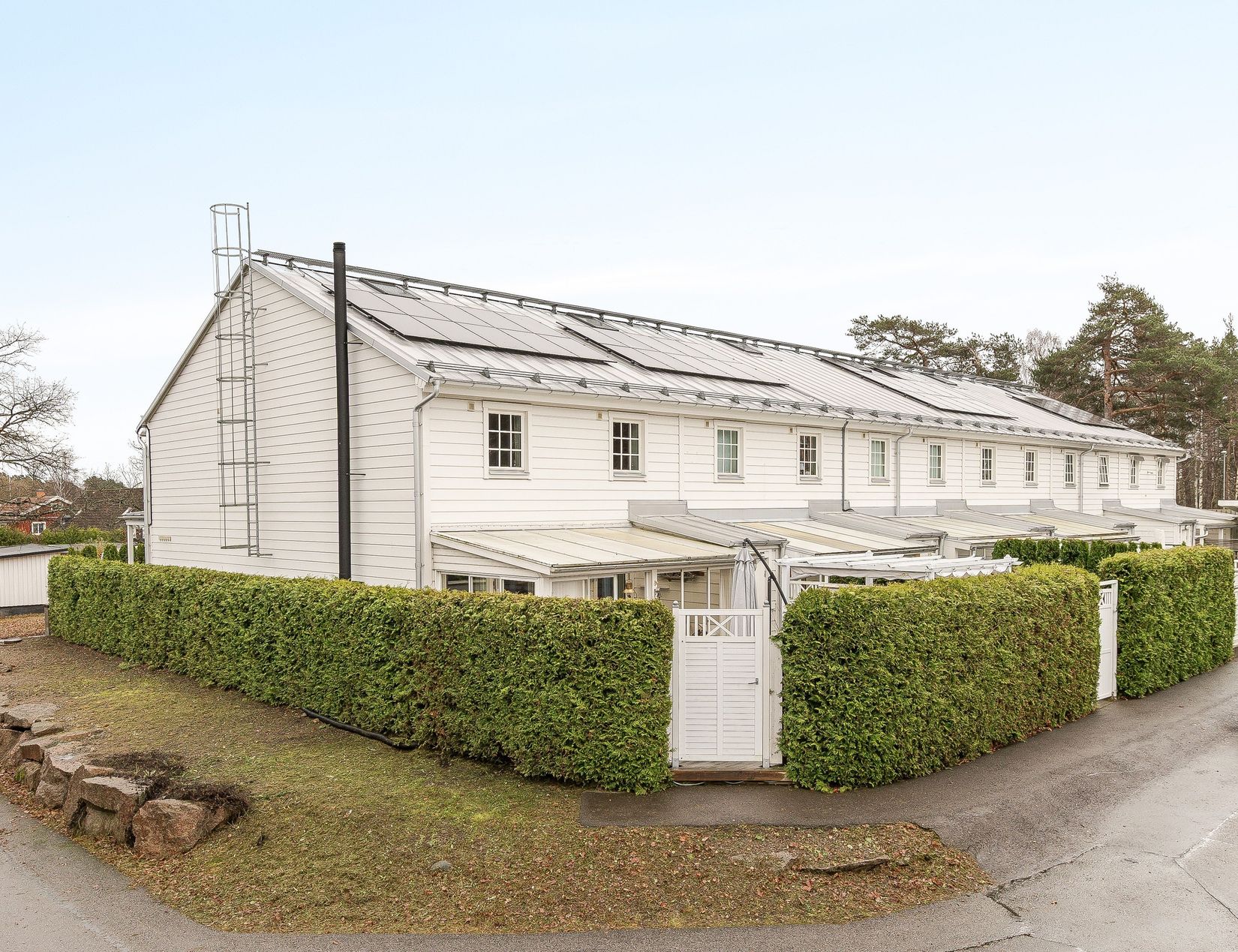 Här erbjuds ett modernt och stilfullt gavelradhus i New England-stil med ett fantastiskt hörnläge, där ljus, rymd och funktion samspelar med stilrena ytskikt och bekvämligheter som gör vardagen enkel och trivsam. Huset är uppfört 2016 och erbjuder ett modernt boende med fyra sovrum, två badrum, tvättstuga, vardagsrum med braskamin, allrum, ett socialt kök och generösa sällskapsytor både inomhus och utomhus. På taket finns solceller, som ger lägre driftkostnader och bidrar till ett mer hållbart boende.