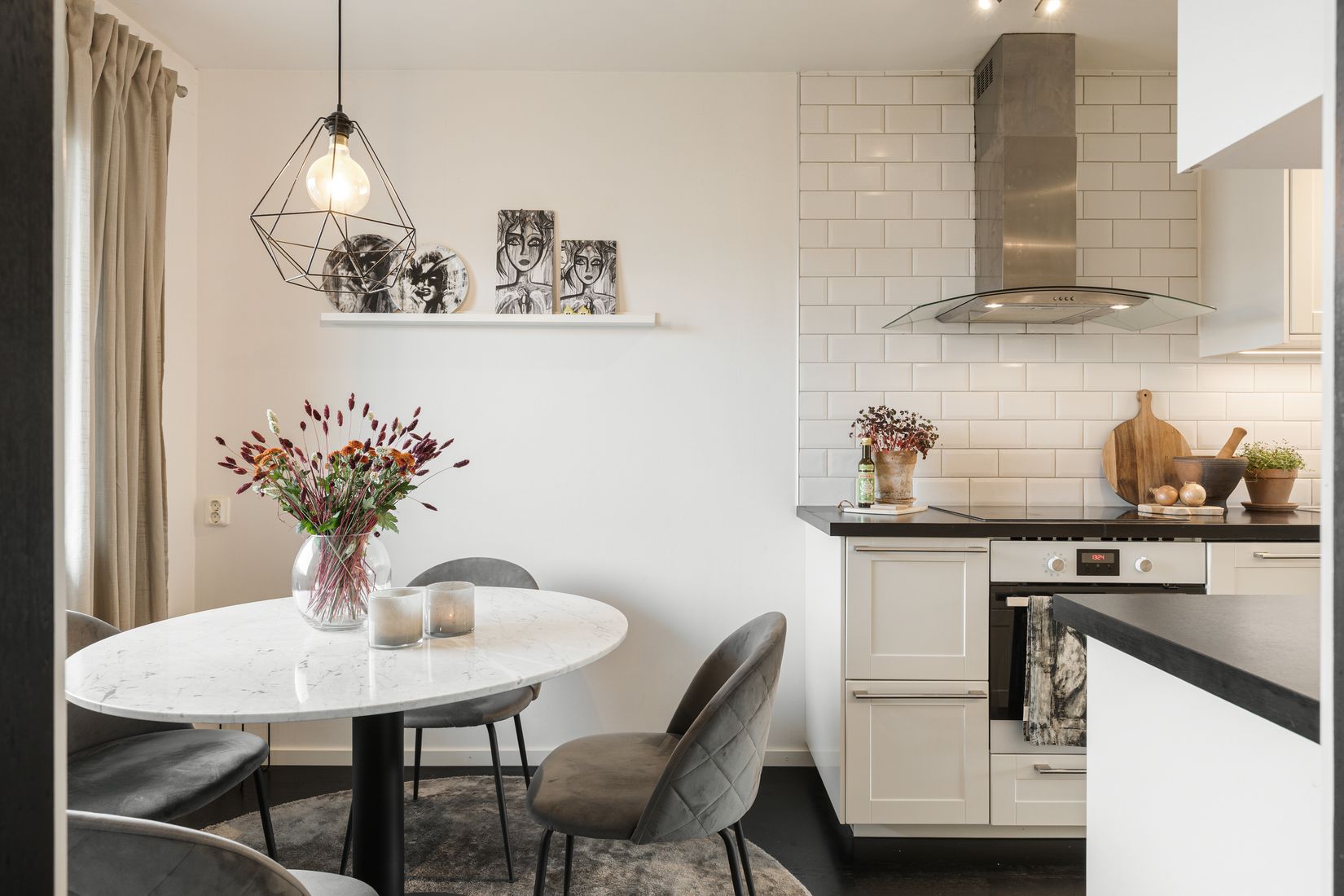 Köket är renoverat och utformat med utvalda material som skapar en modern och tilltalande helhet. Generösa arbetsytor och bra förvaring. Intill fönstret finns en naturlig plats för en matgrupp.