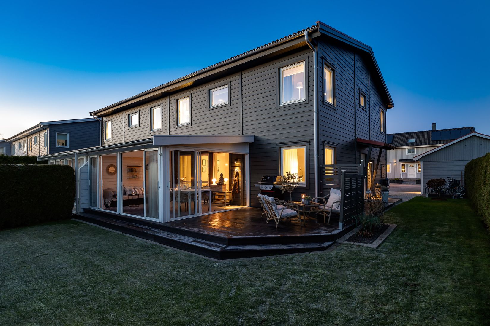 Till huset hör carport med elbilsladdare, stor uppfart och fiber indraget för smidig uppkoppling.