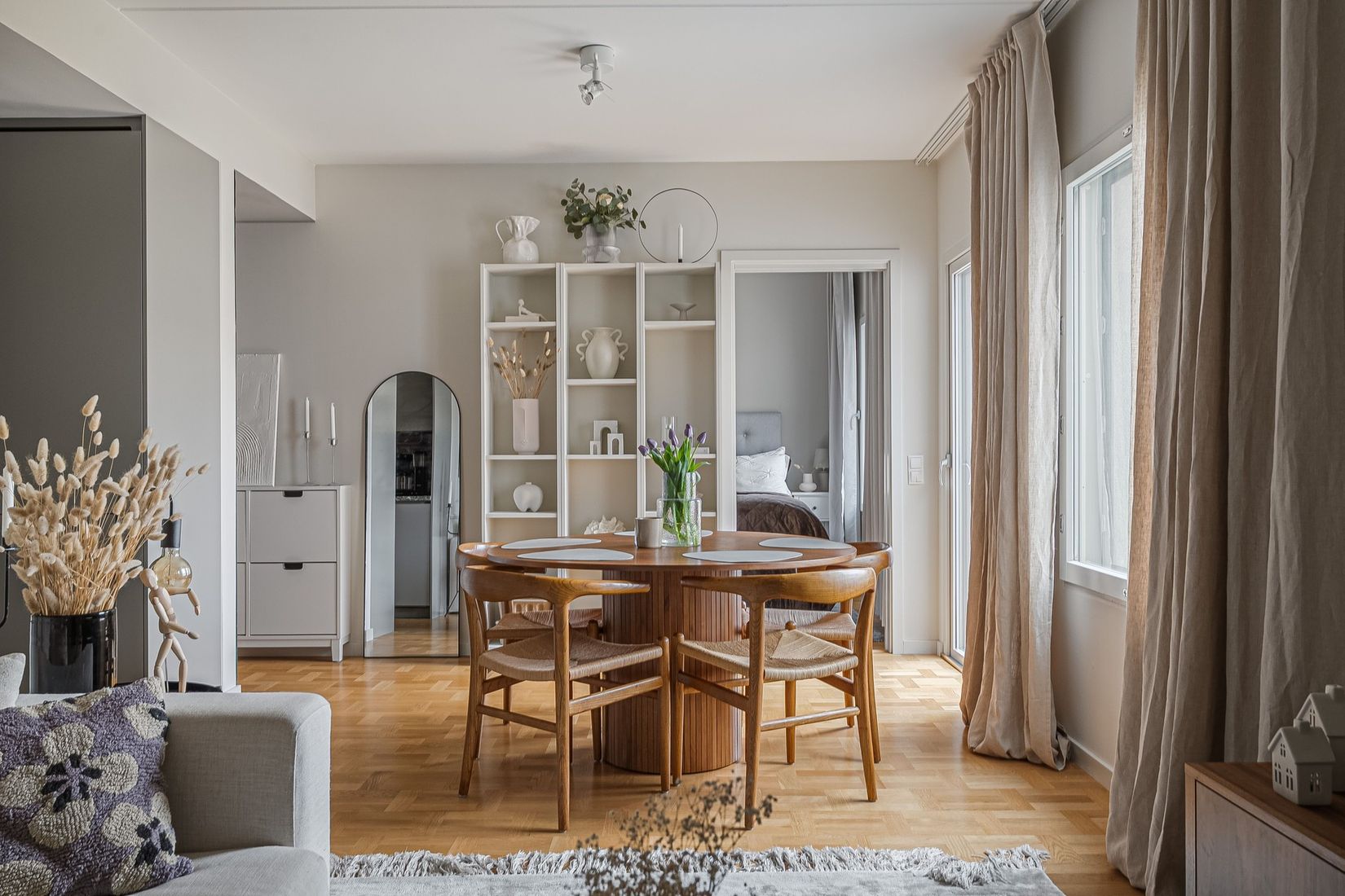 - Smarta och bekväma lösningar såsom skjutdörrar, golvvärme och kombinerad tvätt- och torktumlare.