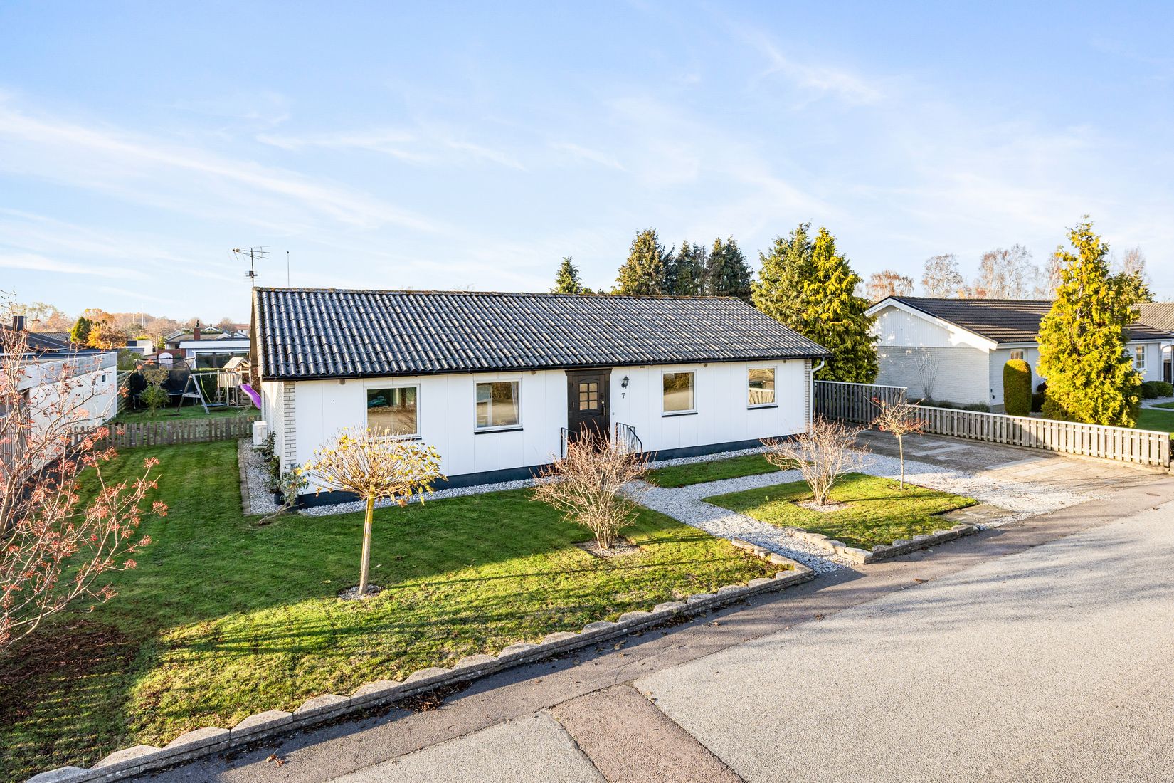 På en lugn och omtyckt gata i barnvänliga Nybrostrand väntar detta välskötta enplanshus med en inbjudande trädgård och härliga sociala ytor. Framsidan bjuder på en lummig gräsmatta, vackra buskar och en generös uppfart som leder fram till det praktiska garaget - perfekt för dig som behöver gott om parkeringsplats. Planlösningen är både funktionell och flexibel med fyra sovrum, stilrent renoverat badrum, gäst-wc, luftigt vardagsrum, moderniserat kök samt tvättstuga med angränsande stor klädkammare. Här finns även ett rymligt uterum som förlänger säsongen och ger extra plats för umgänge. Allt detta i havsnära Nybrostrand, endast ca 7 km från Ystad och med milslång sandstrand runt hörnet.