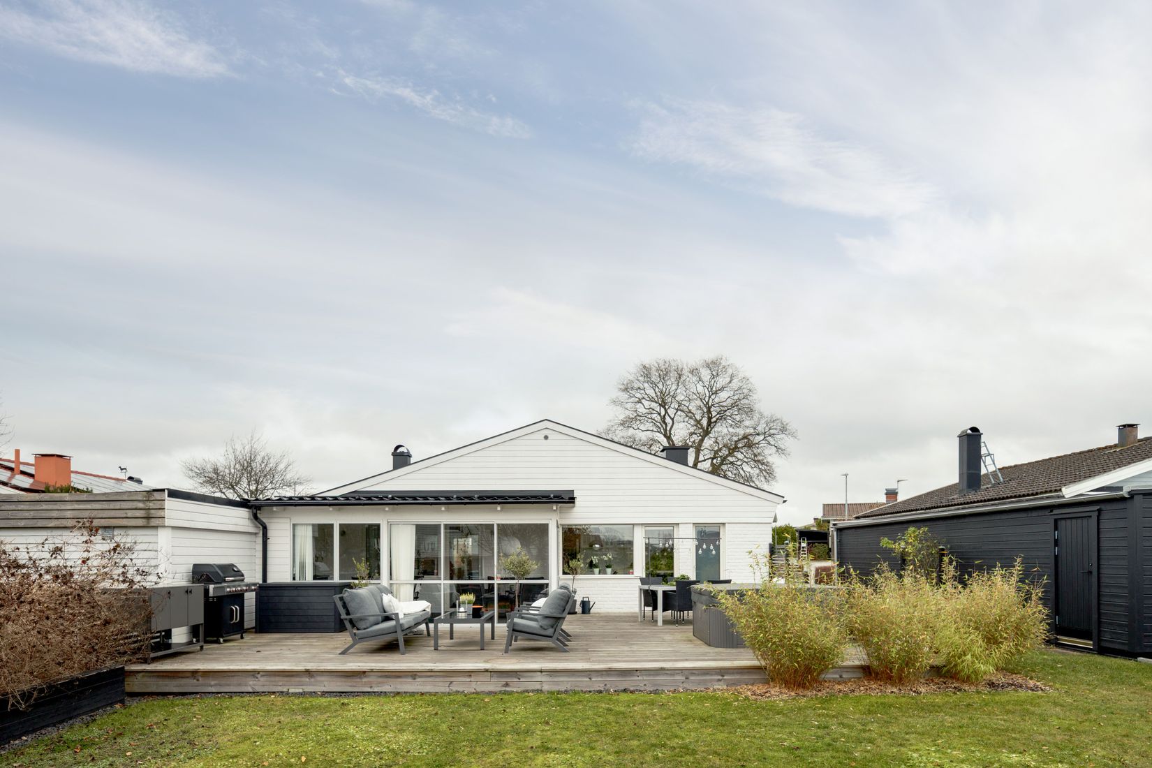 På baksidan väntar en trivsam och lättskött utemiljö med ett inglasat uterum som förlänger säsongen. Här får ni dessutom rikligt med solljus under stora delar av dagen. Den rymliga uteplatsen med trätrall erbjuder ett spabad som bjuder in till avkoppling. Här finns även en lättskött gräsyta som ger plats för både lek och vila. Till huset hör dessutom ett garage som erbjuder extra förvaring och bekvämlighet i vardagen.