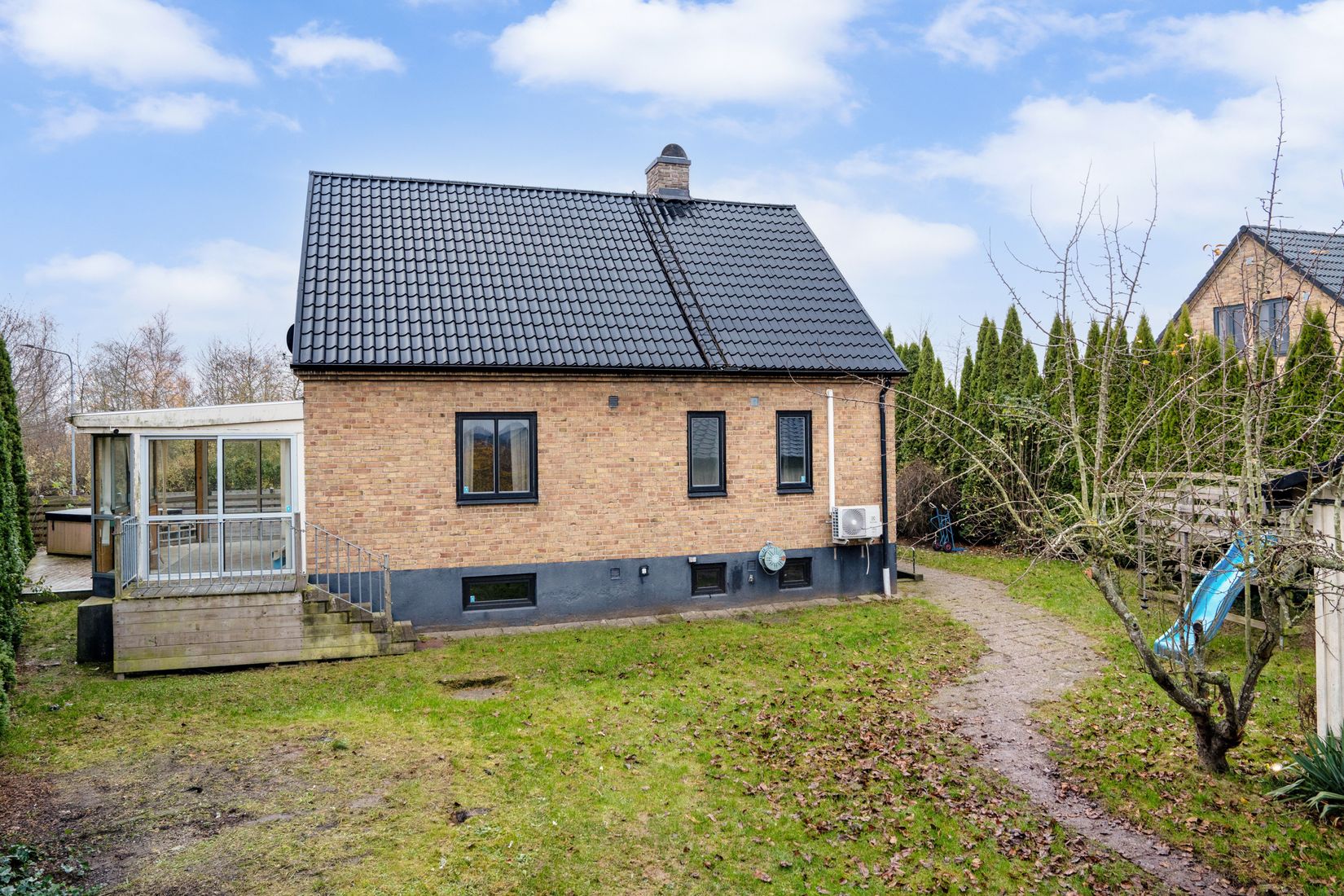 Tomten på 694 kvadratmeter inkluderar en pool med pooltak, idealisk för härliga sommardagar. Huset har även genomgått dränering år 2020, vilket ger trygghet för framtida ägare. Det helkaklade badrummet erbjuder en modern känsla och praktisk användning.
