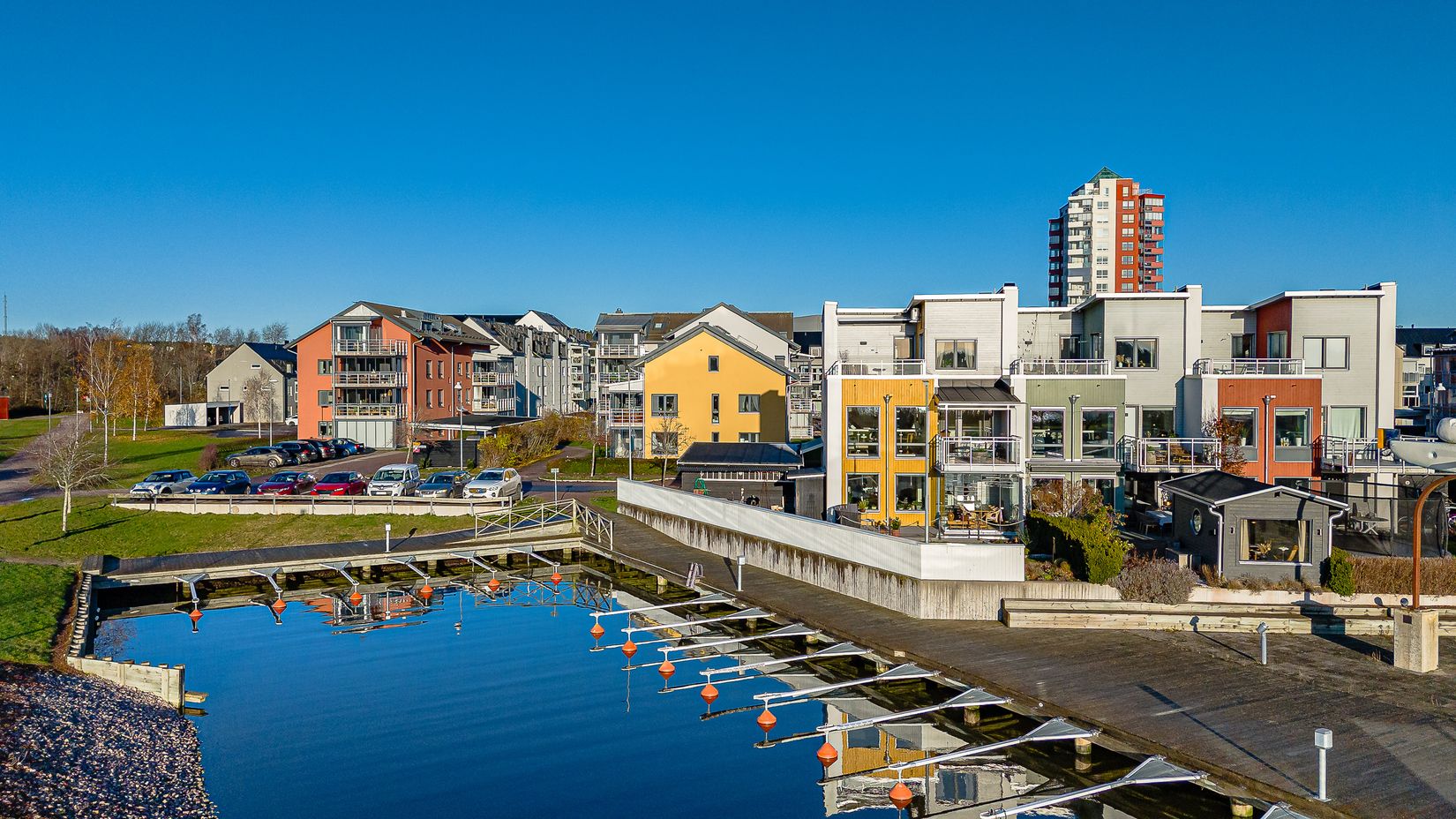 Redan på entréplanet möts du av ett ljust och öppet hem där kök och vardagsrum flyter samman i en harmonisk helhet. De generösa fönsterpartierna släpper in ljuset från två väderstreck och den öppna lösningen mot mellanplanet skänker rymd och exklusiv karaktär. Utanför breder flera härliga uteplatser ut sig – en välkomnande entrésida med förråd och, mot den soliga hamnsidan, både inglasat uterum och solterrass. Här blir utsikten över marinan en naturlig del av vardagen, där vattnet skimrar lika vackert till morgonkaffet som vid kvällens sista glas.