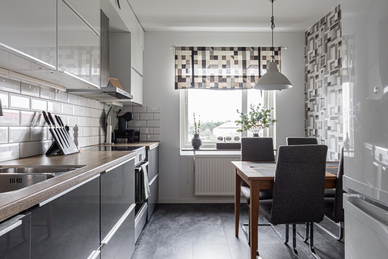Välkommen till ett trivsamt hem med lugnt läge högst upp i huset på Ringvägen 53B i Köping. Redan i hallen möts du av en välkomnande atmosfär och praktiska förvaringsmöjligheter som ger en ordningsam och funktionell entré. Köket är stilrent och har en naturlig matplats vid fönstret där dagens måltider kan avnjutas i ett behagligt ljusinsläpp.