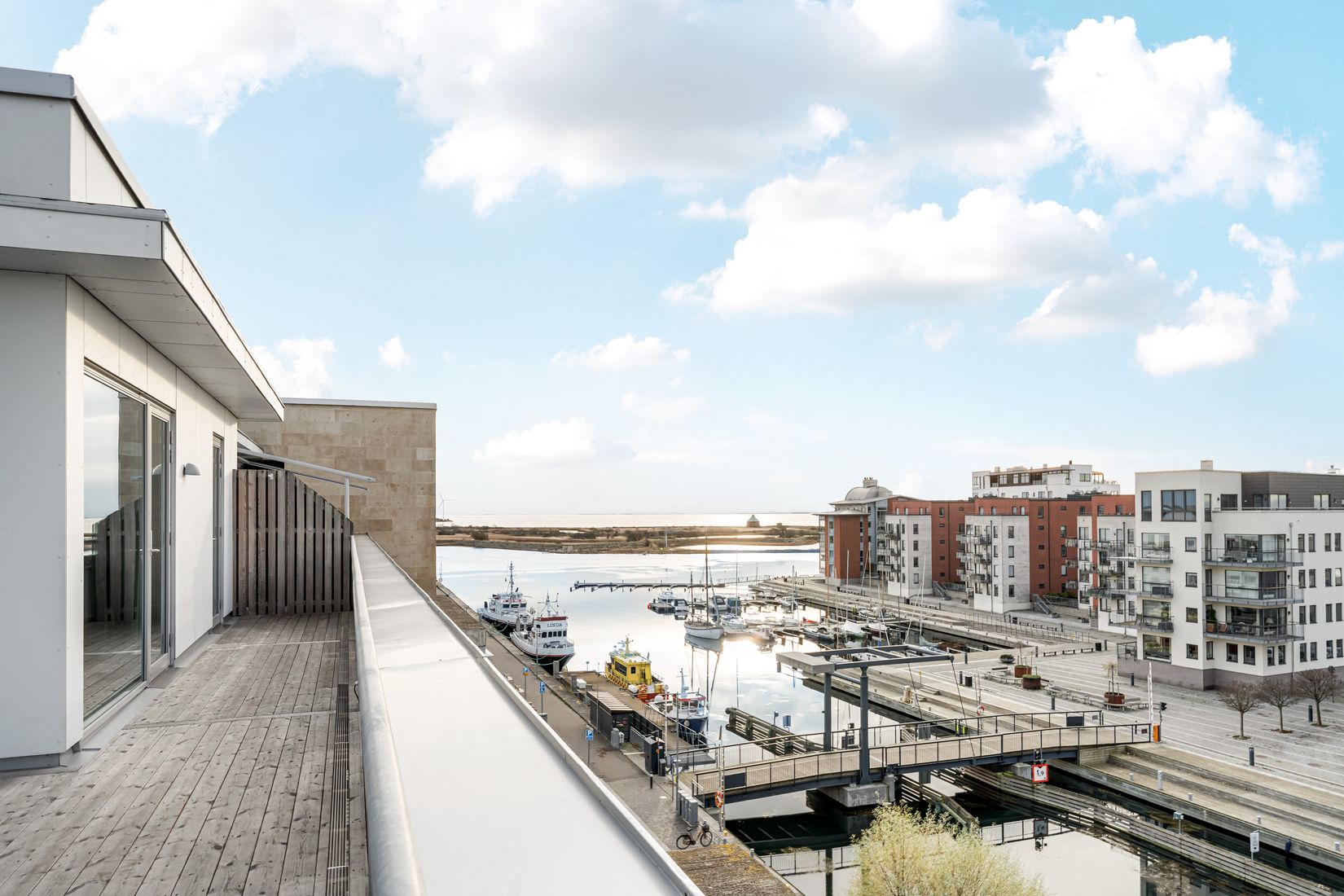 Bland lägenhetens tillgångar kan man börja med att nämna den fantastiska takterrassen om cirka 30 kvm i härligt västerläge och med en slående utsikt över Öresund och Landskrona hamn, du kan även skymta Ven och Danmark. Som om inte detta vore nog erbjuder den här moderna lägenheten en öppen planlösning med stora härliga fönsterpartier som vetter mot väster och tar er ut till takterrassen. Bostadens öppna planlösning mellan kök och vardagsrum erbjuder stora härliga sociala ytor med tillhörande kamin för mysvärme under årets kallare dagar. Det välplacerade gavelläget och den generösa takhöjden som möjliggör en extra rad fönster ger bostaden det där lilla extra!