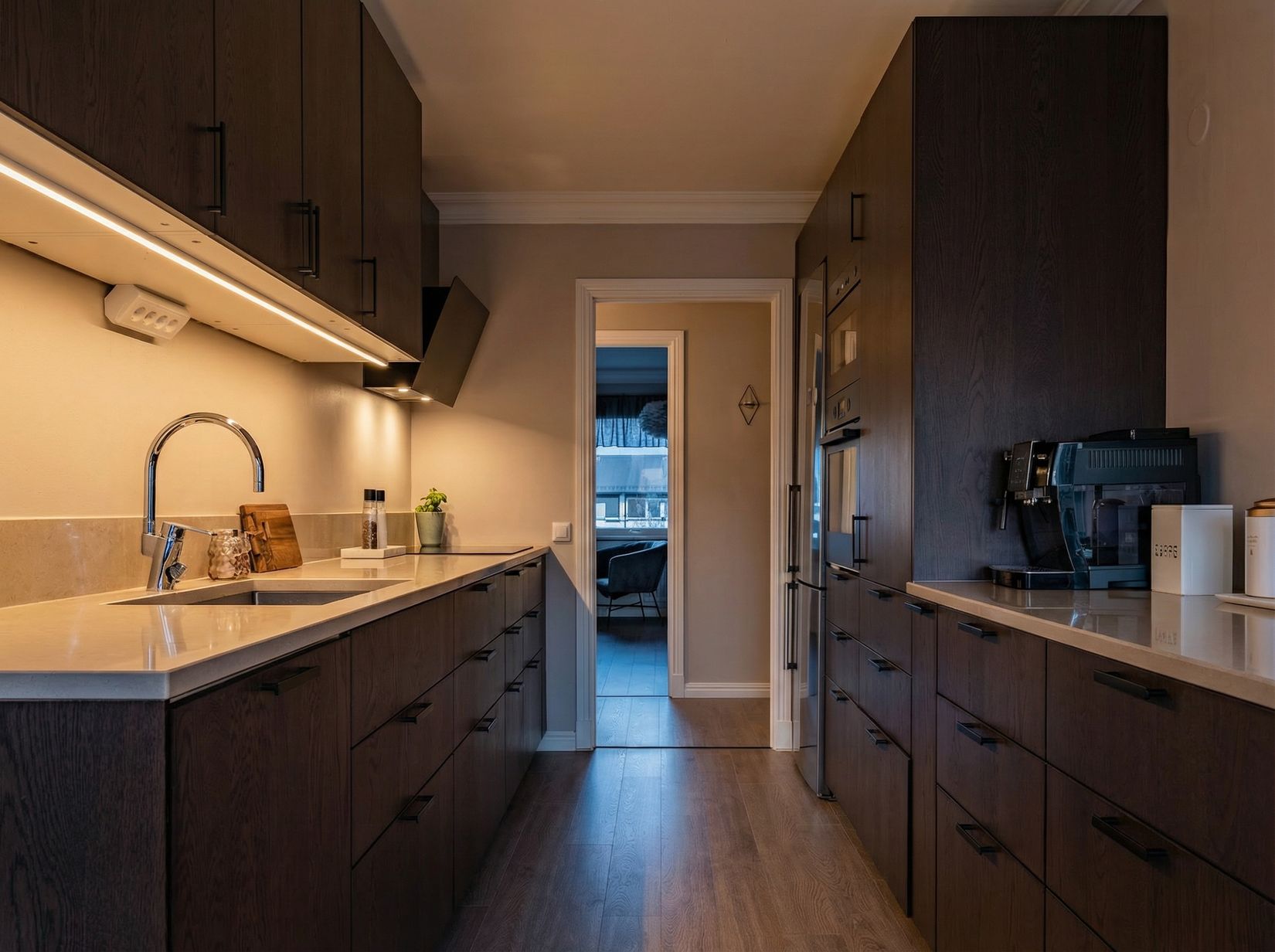 Under de senaste åren har denna bostad genomgått en totalrenovering där inga detaljer har lämnats åt slumpen. Samtliga golv, ytskikt och kök har bytts ut och skapar idag en inbjudande och modern känsla. Köket, som är helt nyrenoverat, bjuder på gott om arbetsyta och har alla de funktioner som gör matlagningen både enkel och inspirerande.