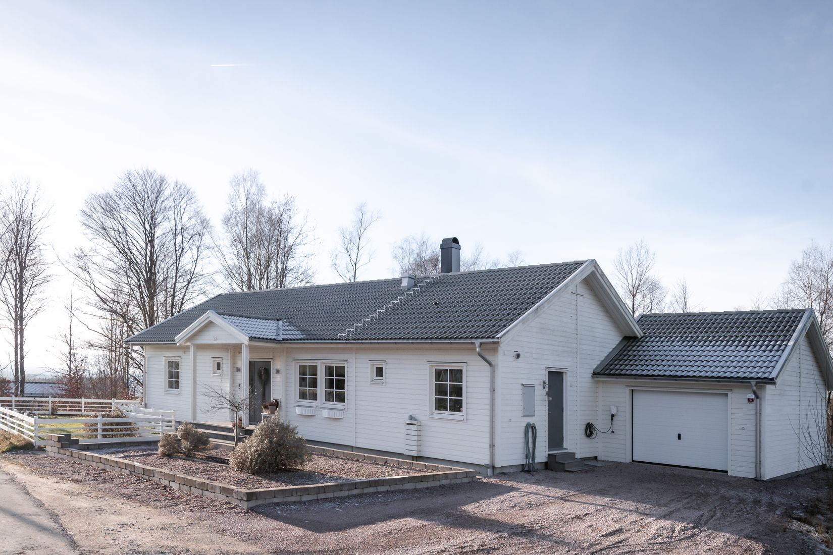 Det vidbyggda garaget rymmer både bil och förvaring, och på uppfarten finns gott om plats för extra fordon. Elbilsladdare finns installerad, en uppskattad och framtidssäker bekvämlighet.
